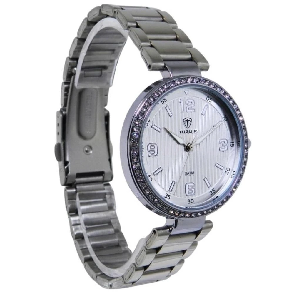 Relógio Tuguir Feminino Ref: Tg30385 Prateado Estojo Porta Jóias