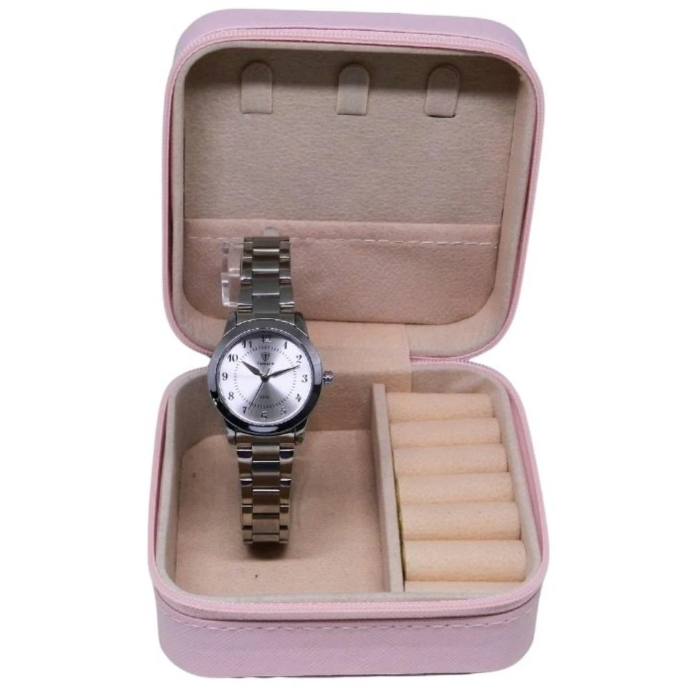 Relógio Tuguir Feminino Ref: Tg30390 Prateado Estojo Porta Jóias