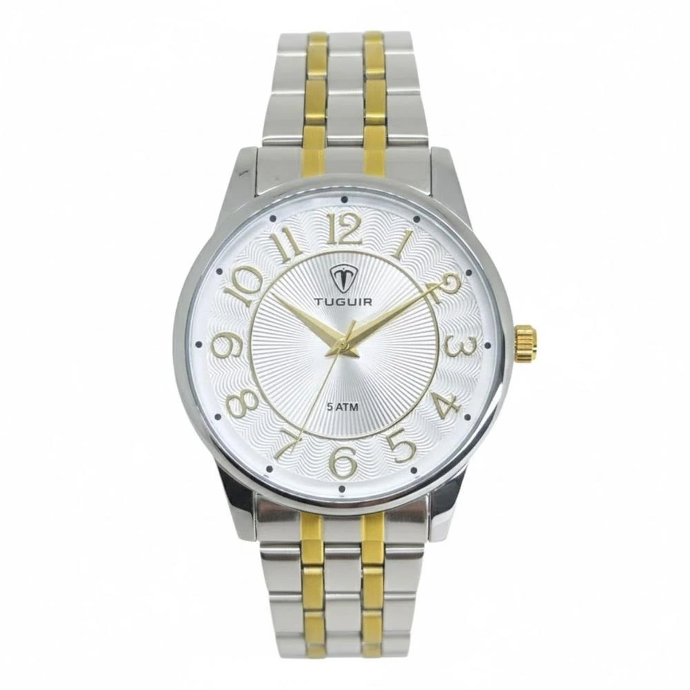 Funções: AnalógicoResistência à Água: 50mDiâmetro da Caixa: 39 mmCaracterísticas: com caixa em Metal e pulseira em AçoVidro: Cristal MineralFundo RosqueadoAlimentação do maquinário: BateriaMostrador Prateado com todos os númerosMaquinário JaponêsPrateado com DouradoGarantia de 1 Ano