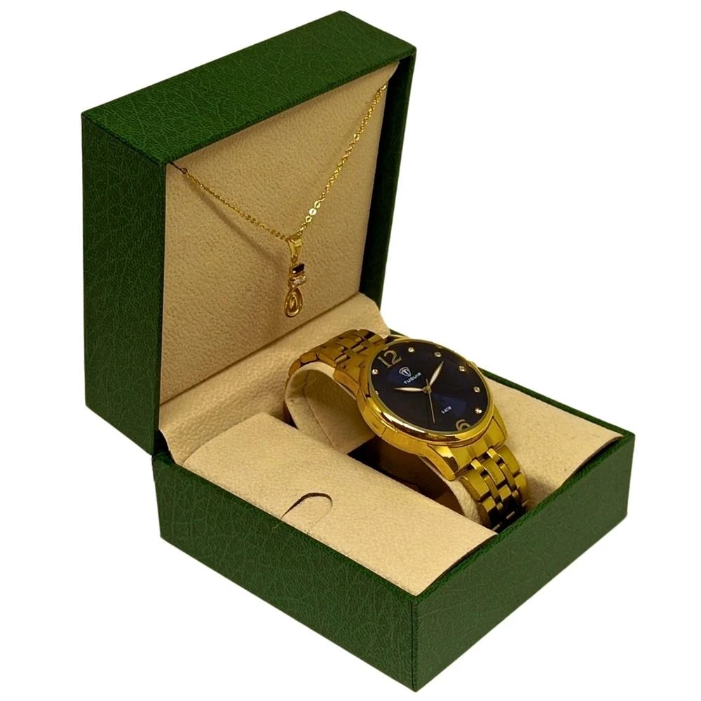 Funções: AnalógicoResistência à Água: 50mDiâmetro da Caixa: 39 mmCaracterísticas: com caixa em Metal e pulseira em AçoVidro: Cristal MineralFundo RosqueadoAlimentação do maquinário: BateriaMostrador Azul com Números e pedrasMaquinário japonês+ Corrente e Pingente SemijoiaGarantia de 1 Ano