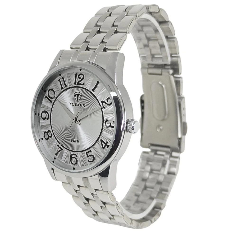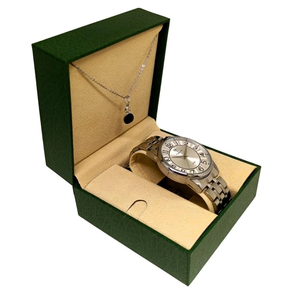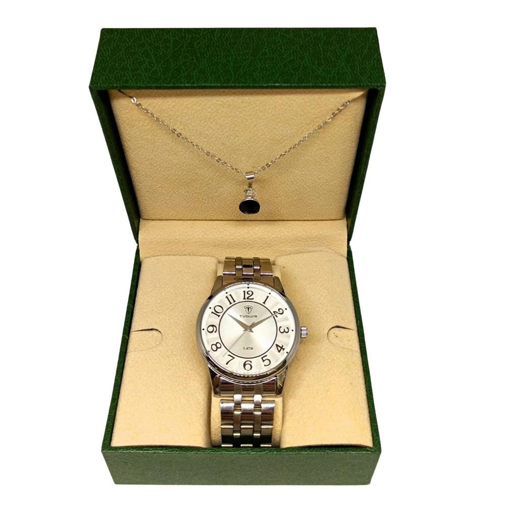 Funções: AnalógicoResistência à Água: 50mDiâmetro da Caixa: 39 mmCaracterísticas: com caixa em Metal e pulseira em AçoVidro: Cristal MineralFundo RosqueadoAlimentação do maquinário: BateriaMostrador Prateado com Todos os NúmerosMaquinário japonês+ Corrente e Pingente SemijoiaGarantia de 1 Ano