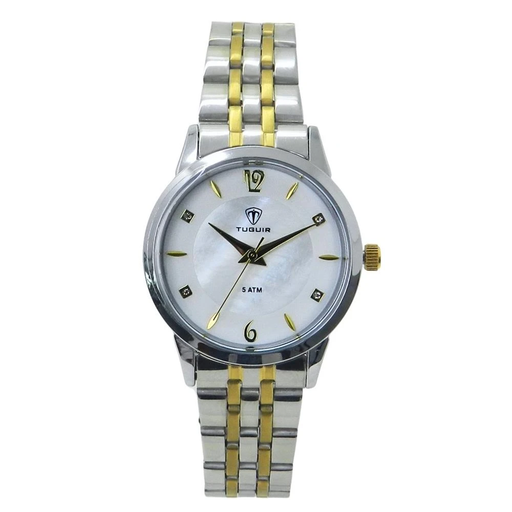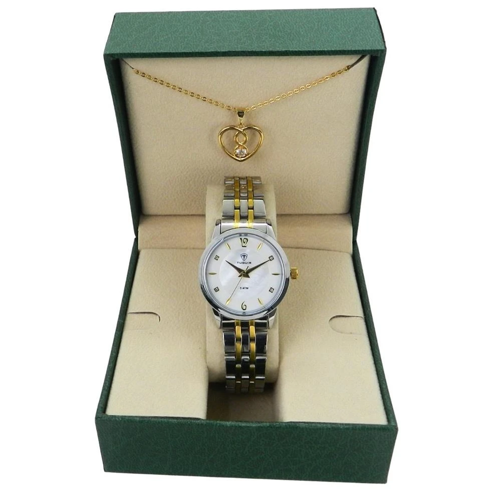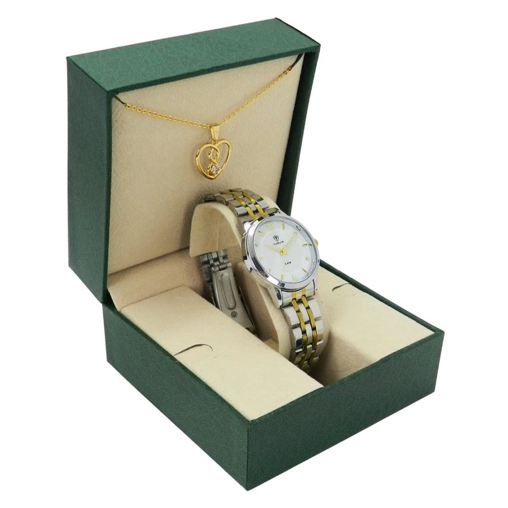 Funções: AnalógicoResistência à Água: 50mDiâmetro da Caixa: 32 mmCaracterísticas: com caixa em Metal e pulseira em AçoVidro: Cristal MineralFundo RosqueadoAlimentação do maquinário: BateriaMostrador Estilo Madreperola Branca com Números e PedrasMaquinário japonês+ Corrente e Pingente SemijoiaPrateado com DouradoGarantia de 1 Ano