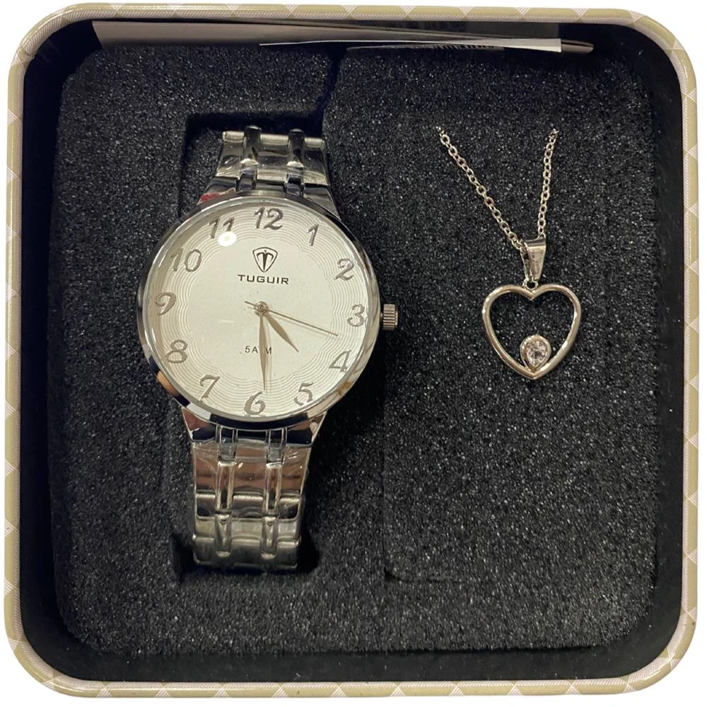 Relógio Tuguir Feminino Ref: W2128tu Tg35067 Prateado + Semijoia