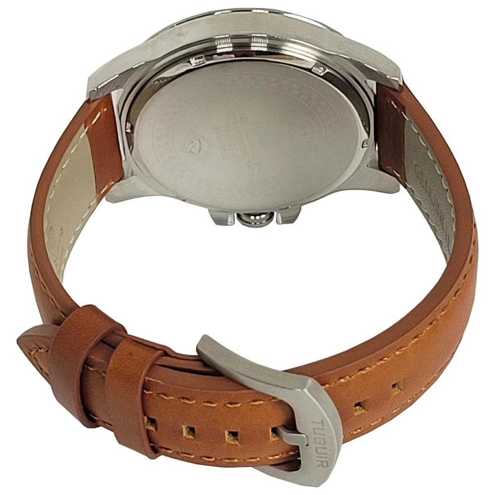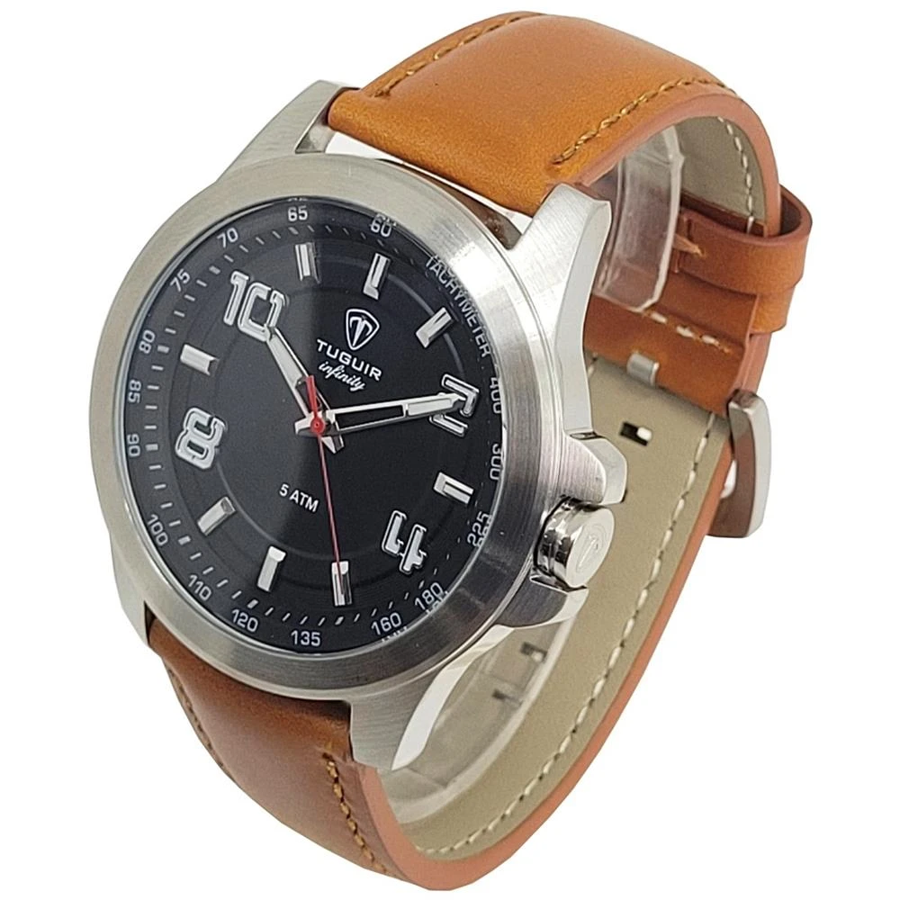 Funções: AnalógicoResistência à Água: 50mDiâmetro da Caixa: 45 mmCaracterísticas: com caixa em Aço e pulseira em Couro Legítimo MarromVidro: Cristal MineralFundo RosqueadoAlimentação do maquinário: BateriaMostrador Preto com númerosLinha: Tuguir InfinityGarantia de 1 Ano