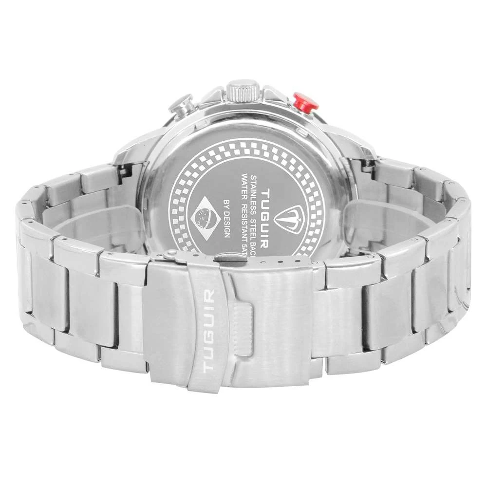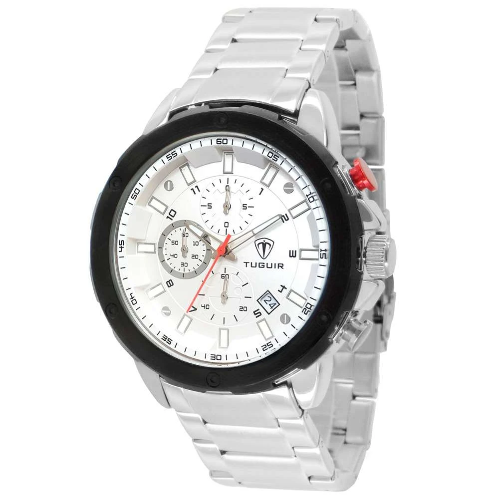 Funções: Analógico, Cronógrafo, Calendário, Horário em 24hResistência à Água: 50mDiâmetro da Caixa: 46 mmCaracterísticas: com caixa em Metal e pulseira em AçoVidro: Cristal MineralFundo RosqueadoAlimentação do maquinário: BateriaMostrador PrateadoGarantia de 1 Ano
