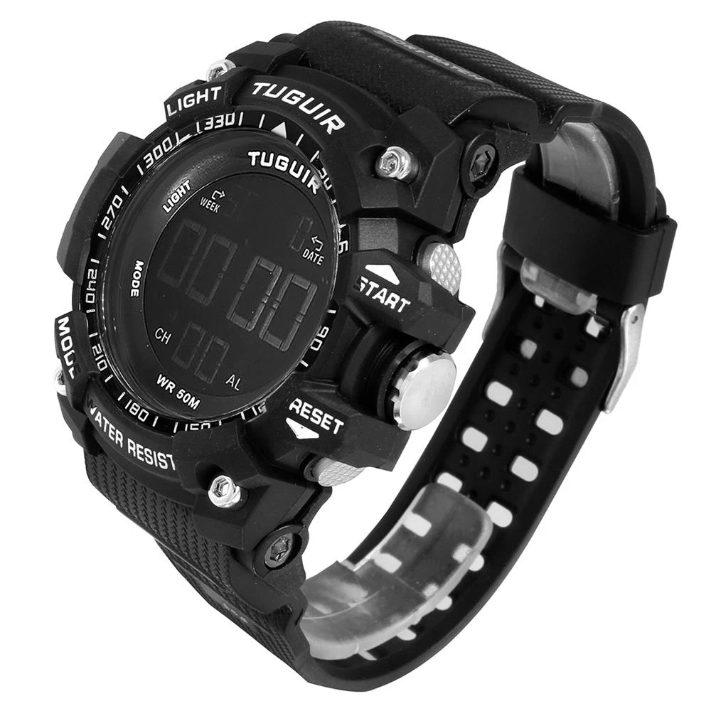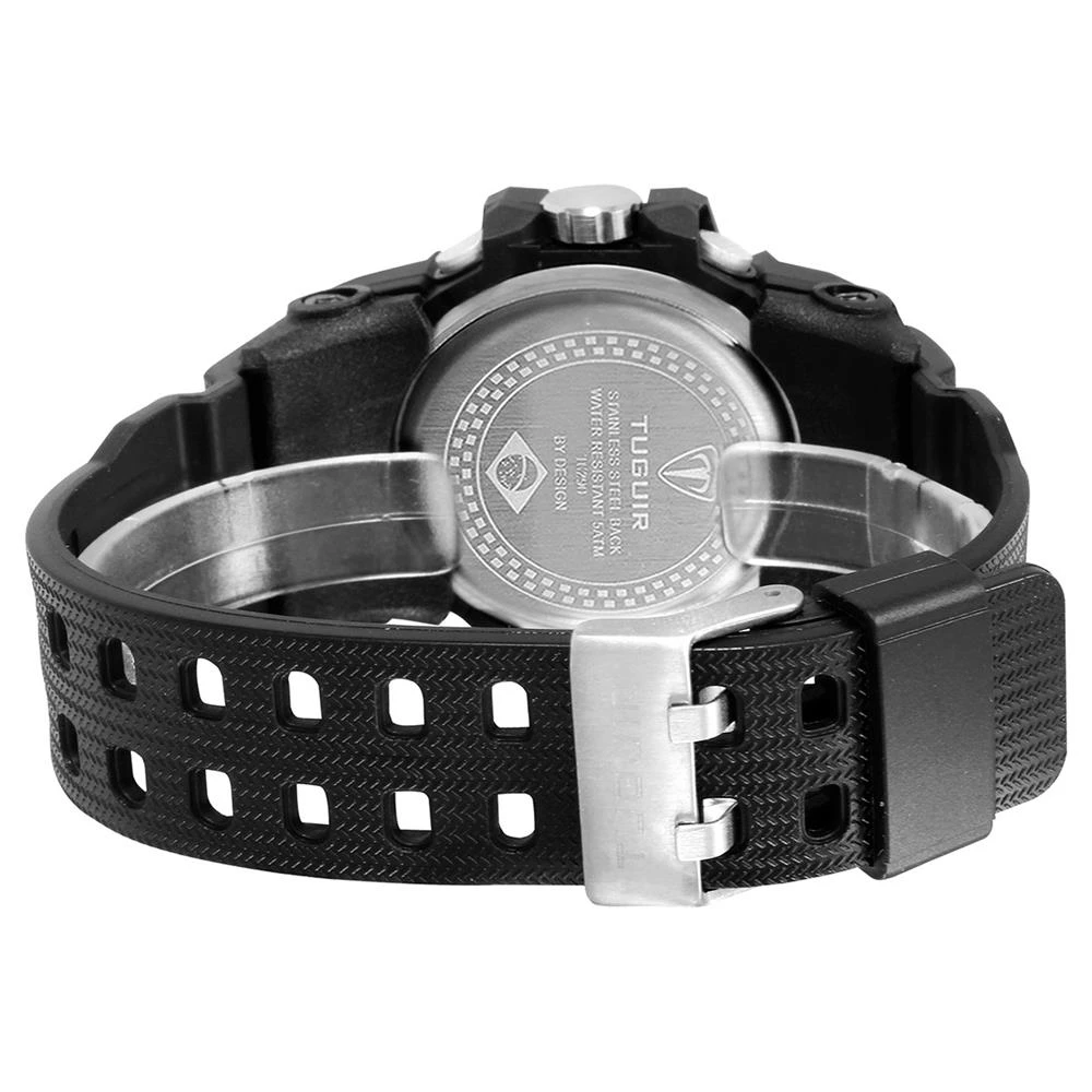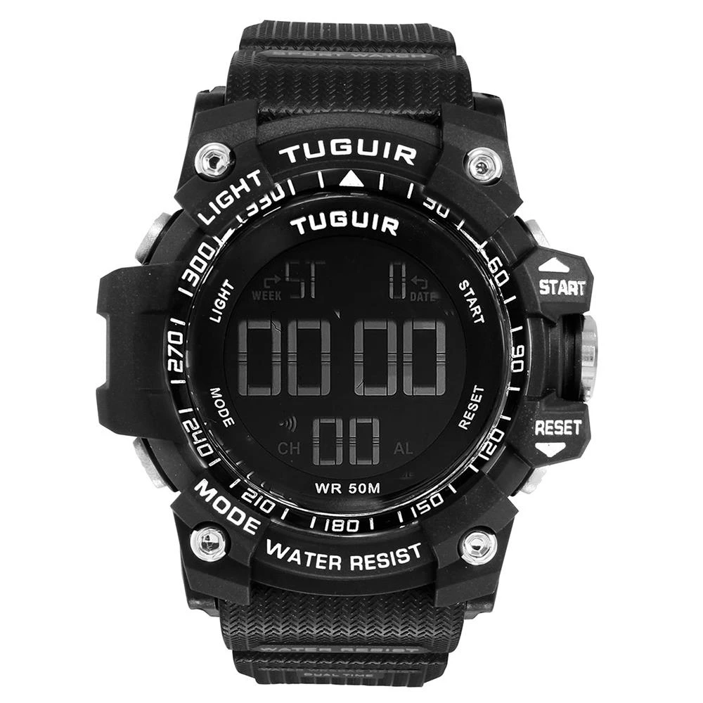 Funções: Digital, Calendário, Iluminação, Alarme, CronógrafoResistência à Água: 50mDiâmetro da Caixa: 50 mmCaracterísticas: com caixa em Policarbonato Preto e pulseira em Poliuretano PretaVidro: AcrílicoFundo ParafusadoAlimentação do maquinário: BateriaMostrador Preto com Detalhes em BrancoGarantia de 1 Ano