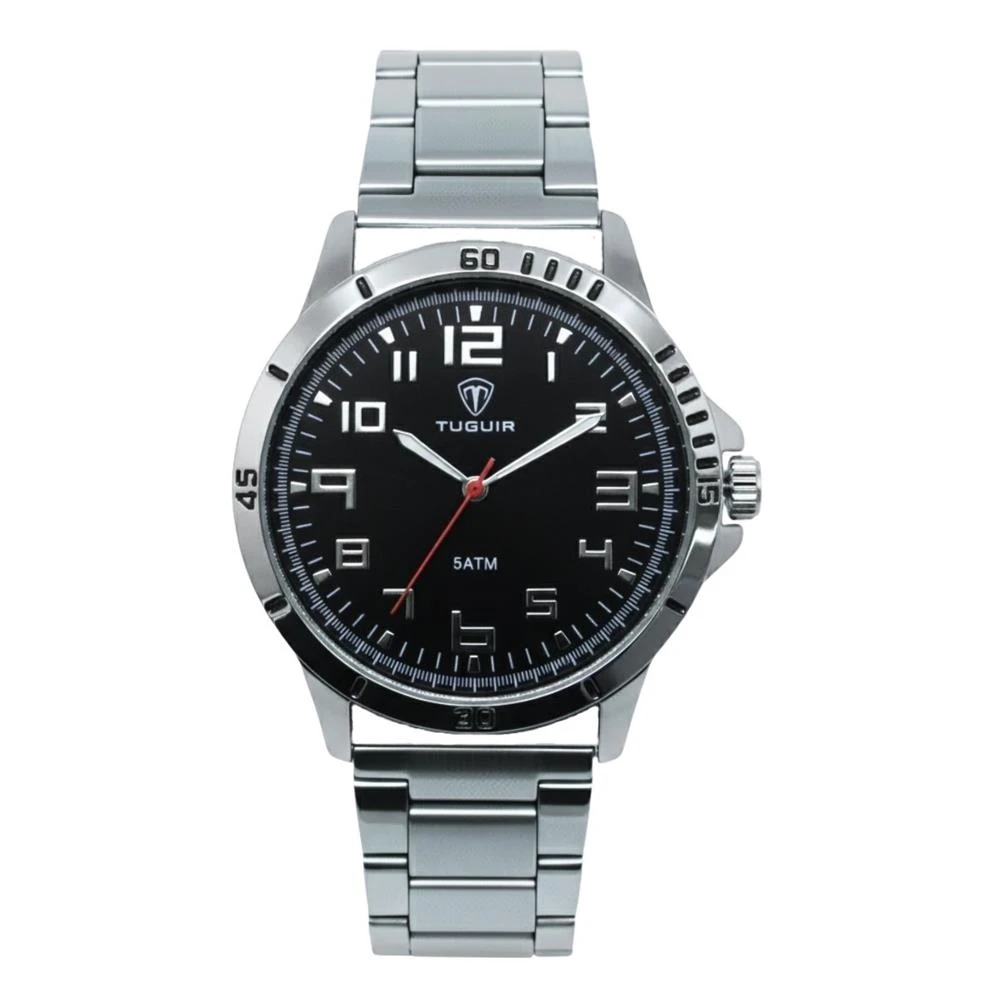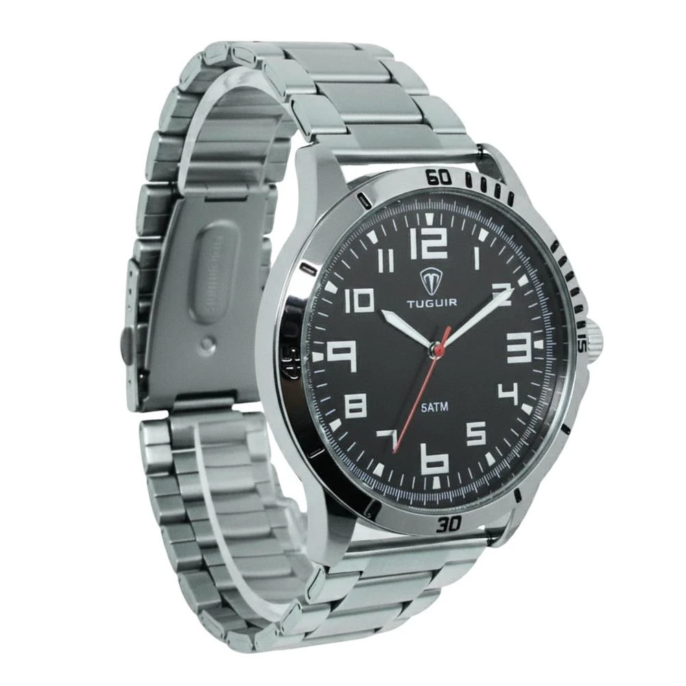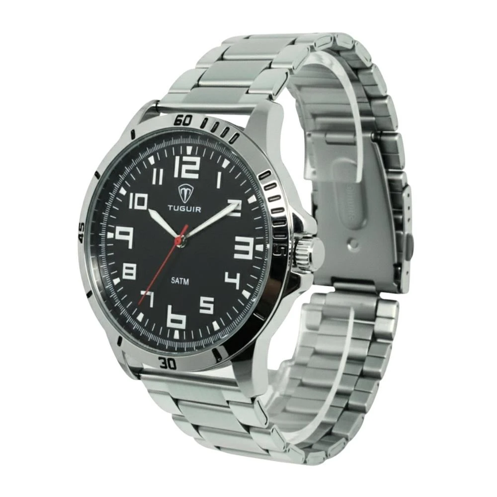 Funções: AnalógicoResistência à Água: 50mDiâmetro da Caixa: 44 mmCaracterísticas: com caixa em Metal e pulseira em AçoVidro: Cristal MineralFundo RosqueadoAlimentação do maquinário: BateriaMostrador Preto com todos os númerosAro Fixo PrateadoGarantia de 1 Ano