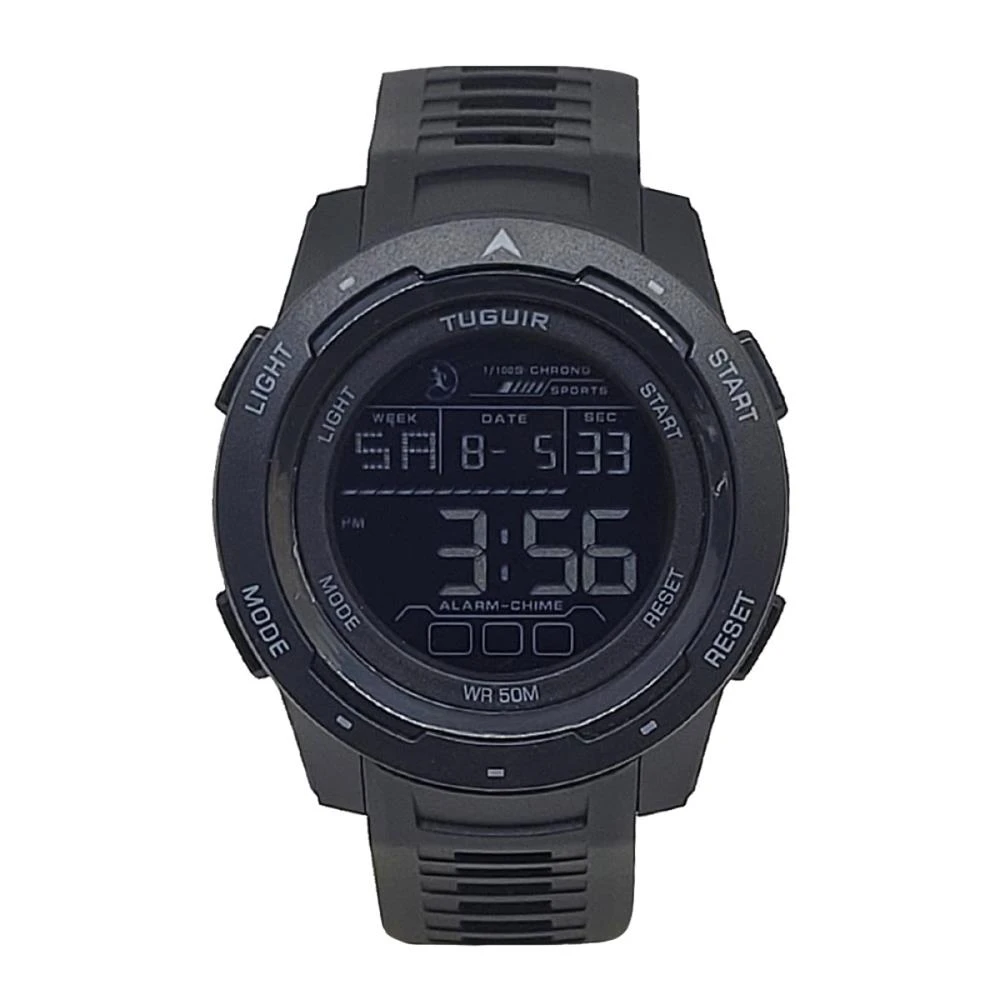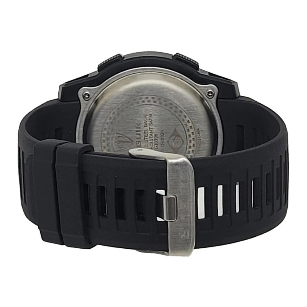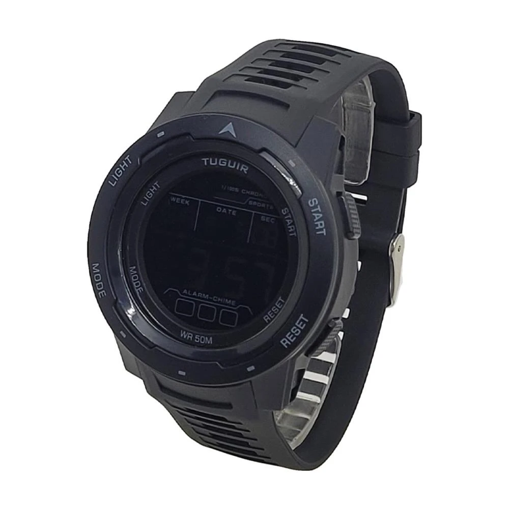 Funções: Digital, Calendário, Iluminação, Alarme, CronógrafoResistência à Água: 50mDiâmetro da Caixa: 46 mmCaracterísticas: com caixa em Policarbonato preto e pulseira em Poliuretano PretoVidro: AcrílicoFundo ParafusadoAlimentação do maquinário: BateriaMostrador Preto com Detalhes em grafiteGarantia de 1 Ano
