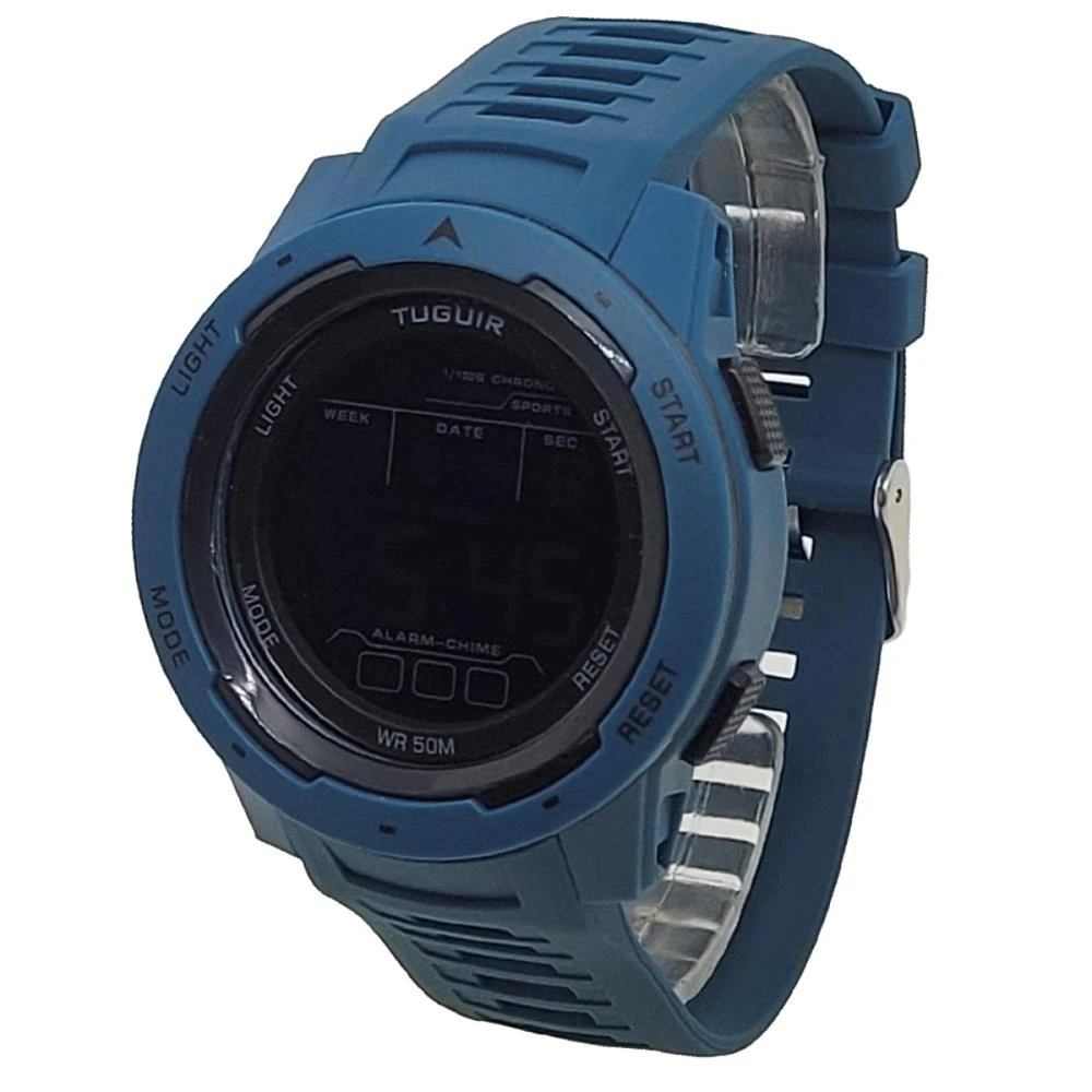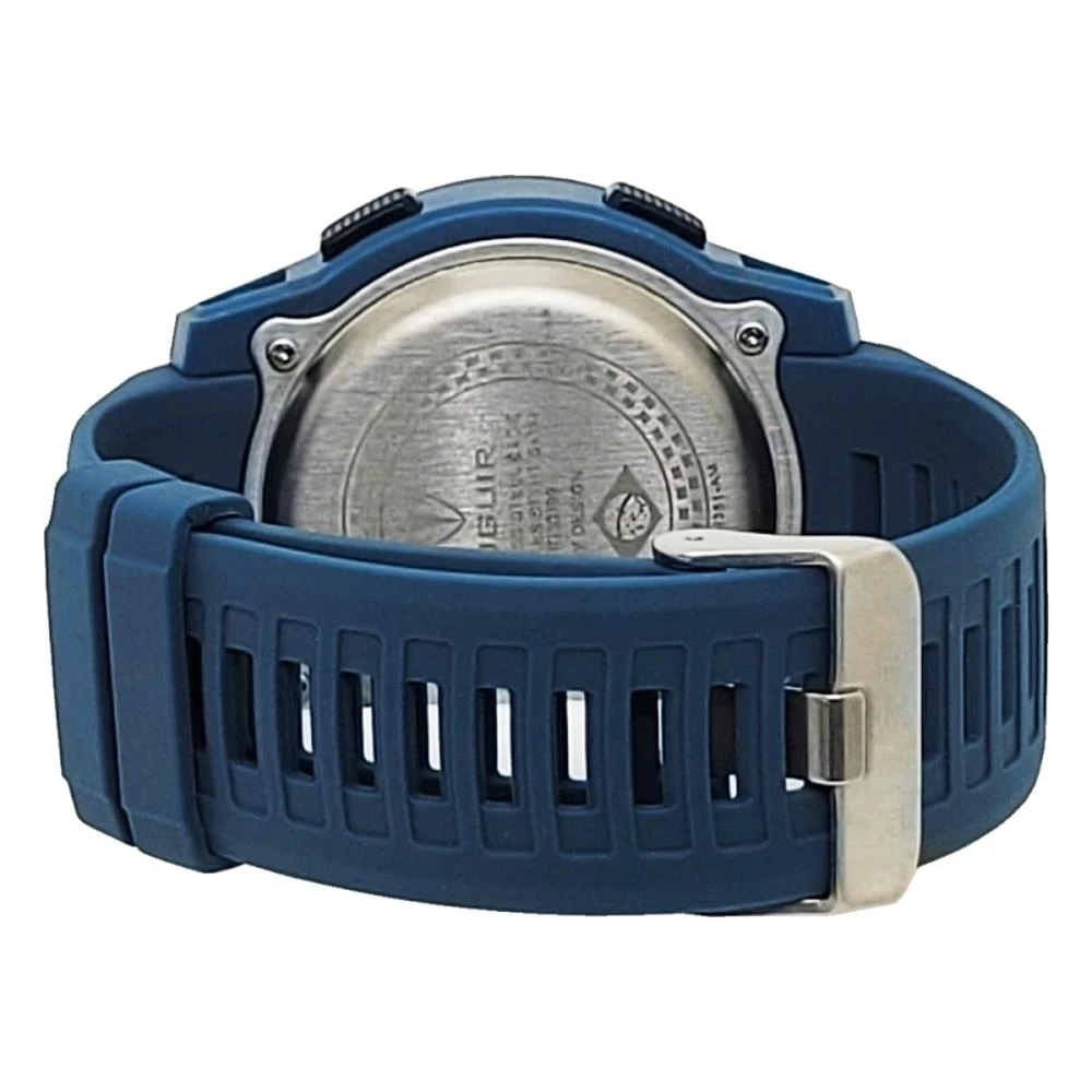 Funções: Digital, Calendário, Iluminação, Alarme, CronógrafoResistência à Água: 50mDiâmetro da Caixa: 46 mmCaracterísticas: com caixa em Policarbonato azul petróleo e pulseira em Poliuretano Azul PetróleoVidro: AcrílicoFundo ParafusadoAlimentação do maquinário: BateriaMostrador Preto com Detalhes em grafiteGarantia de 1 Ano