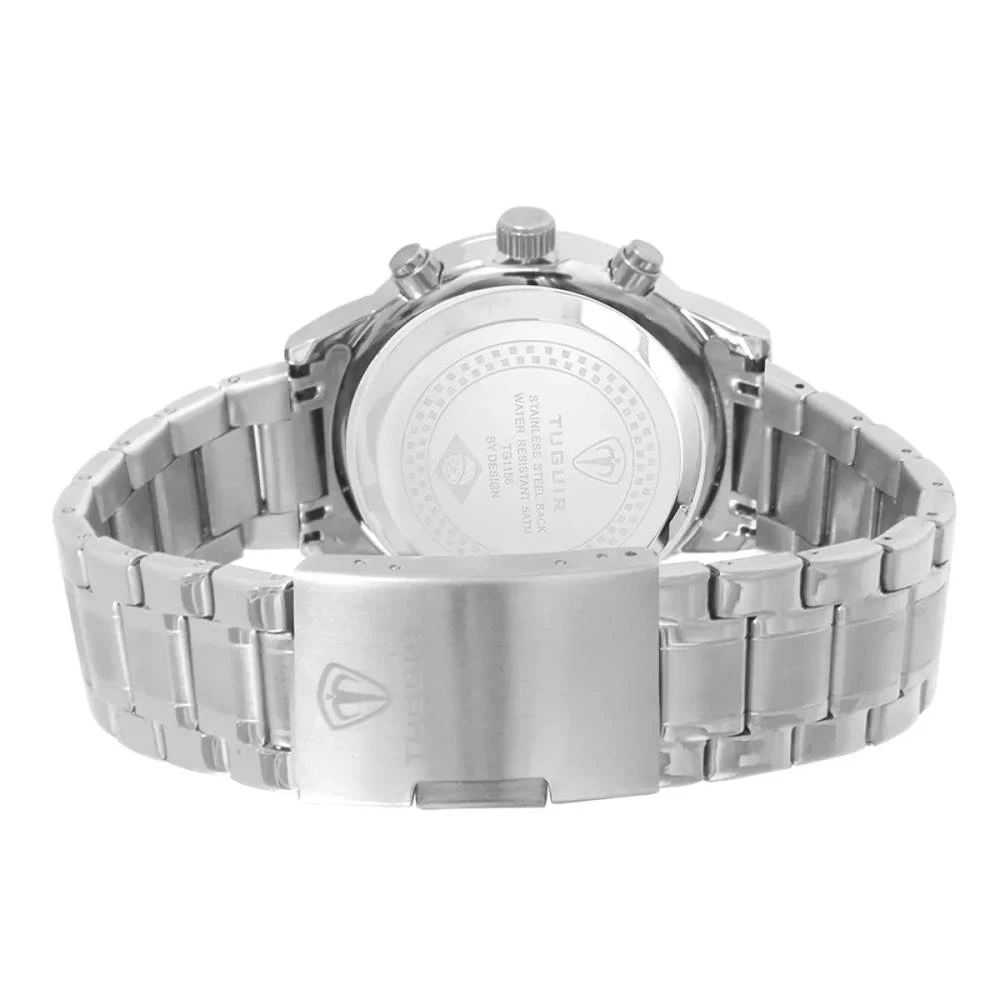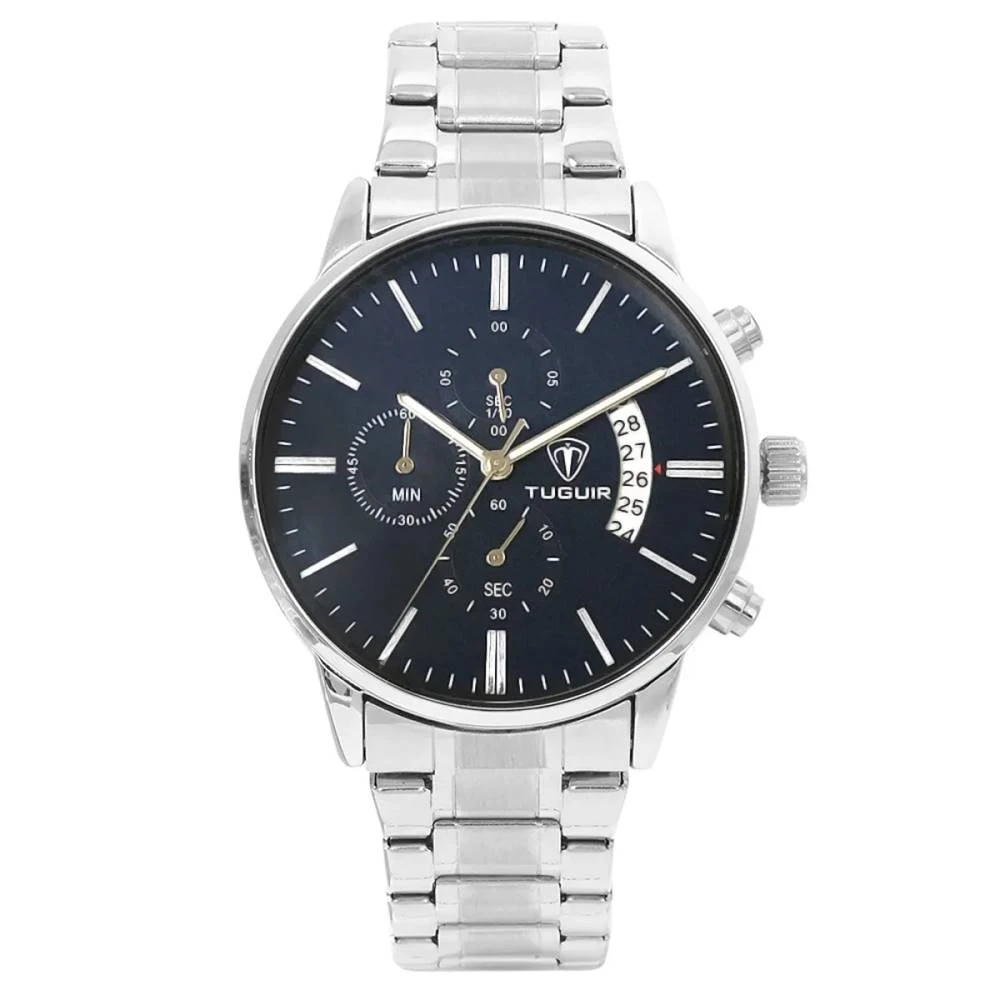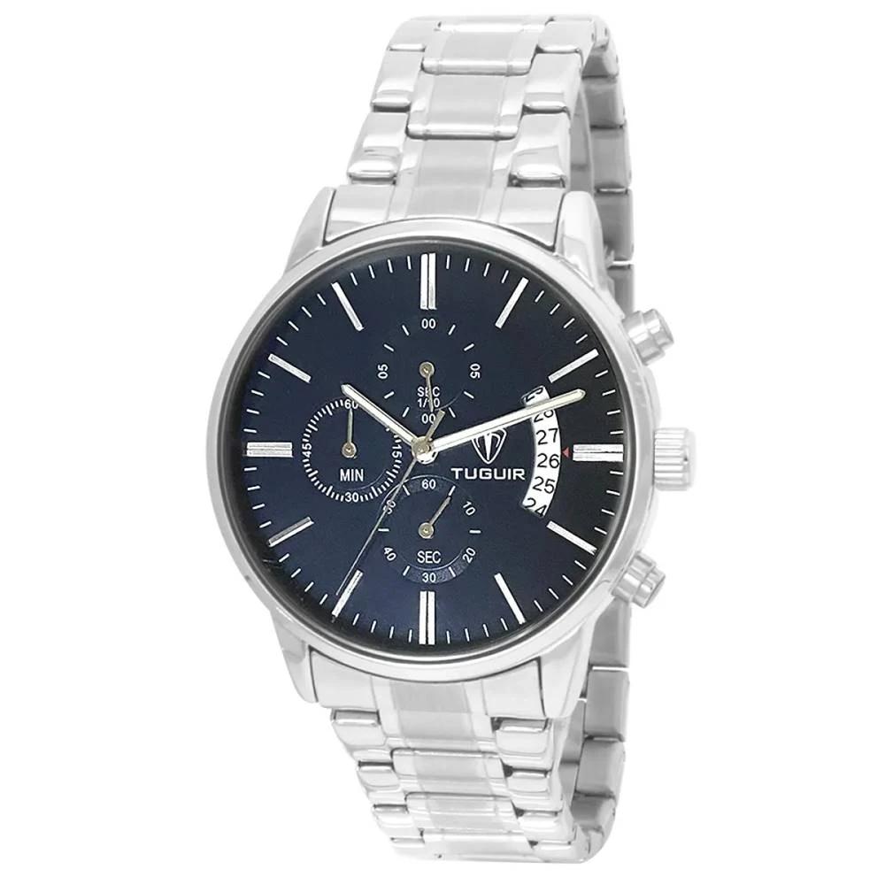Funções: Analógico, Cronógrafo, CalendárioResistência à Água: 50mDiâmetro da Caixa: 43 mmCaracterísticas: com caixa em Metal e pulseira em AçoVidro: Cristal MineralFundo RosqueadoAlimentação do maquinário: BateriaMostrador AzulGarantia de 1 Ano