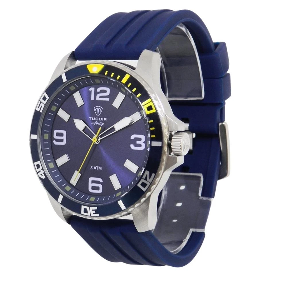 Funções: AnalógicoResistência à Água: 50mDiâmetro da Caixa: 43 mmCaracterísticas: com caixa em Aço e pulseira em Silicone AzulVidro: Cristal MineralFundo RosqueadoAlimentação do maquinário: BateriaMostrador Azul com NúmerosAro Externo Fixo AzulLinha: Tuguir InfinityGarantia de 1 Ano