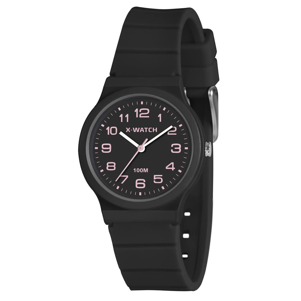 Funções: AnalógicoResistência à Água: 100mDiâmetro da Caixa: 34 mmCaracterísticas: com caixa em Resina preta e pulseira em Silicone pretaVidro: AcrílicoFundo ParafusadoAlimentação do maquinário: BateriaMostrador Preto com todos os números e detalhes em rosaInfantilGarantia de 1 Ano