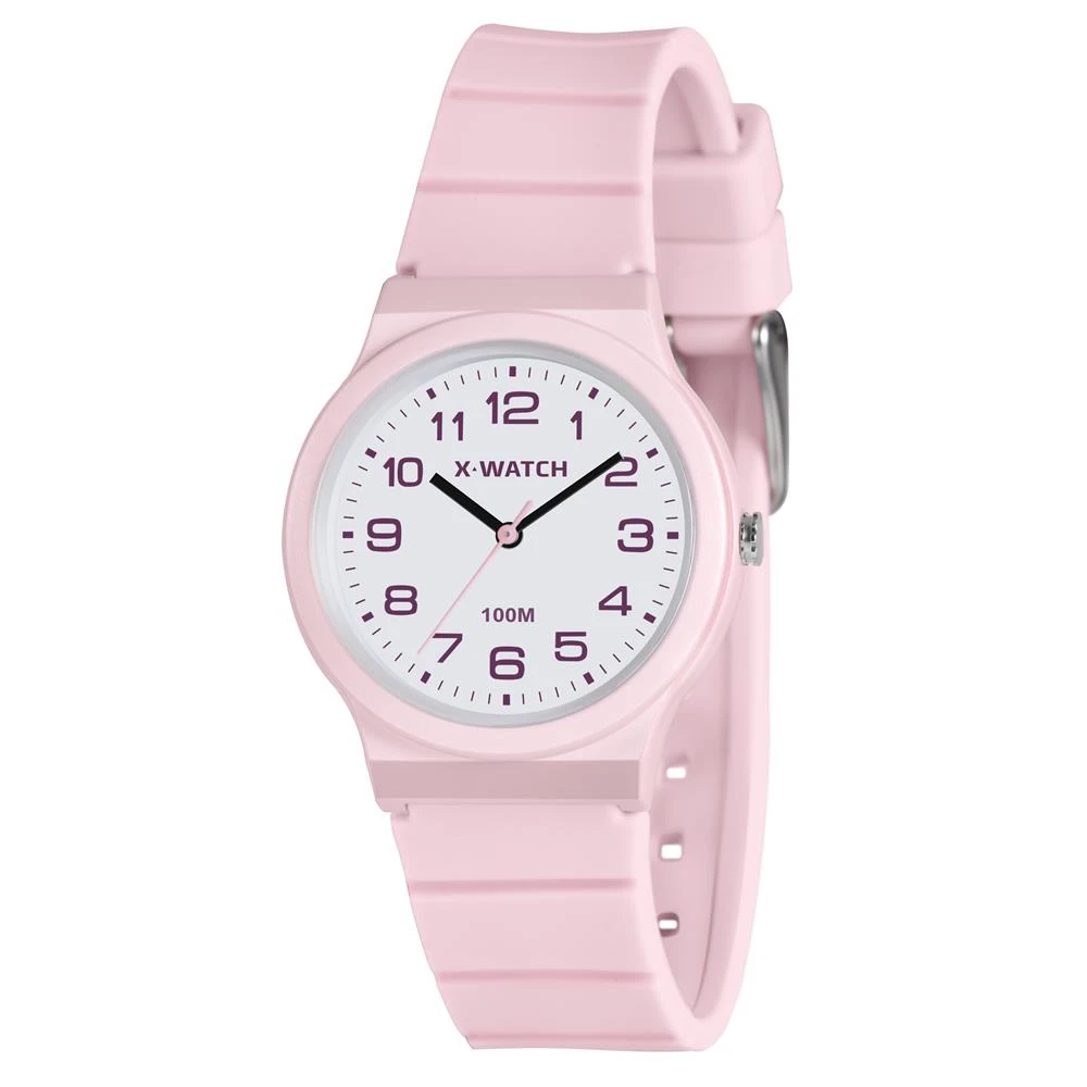 Funções: AnalógicoResistência à Água: 100mDiâmetro da Caixa: 34 mmCaracterísticas: com caixa em Resina rosa e pulseira em Silicone rosaVidro: AcrílicoFundo ParafusadoAlimentação do maquinário: BateriaMostrador Branco com todos os números e detalhes em lilásInfantilGarantia de 1 Ano