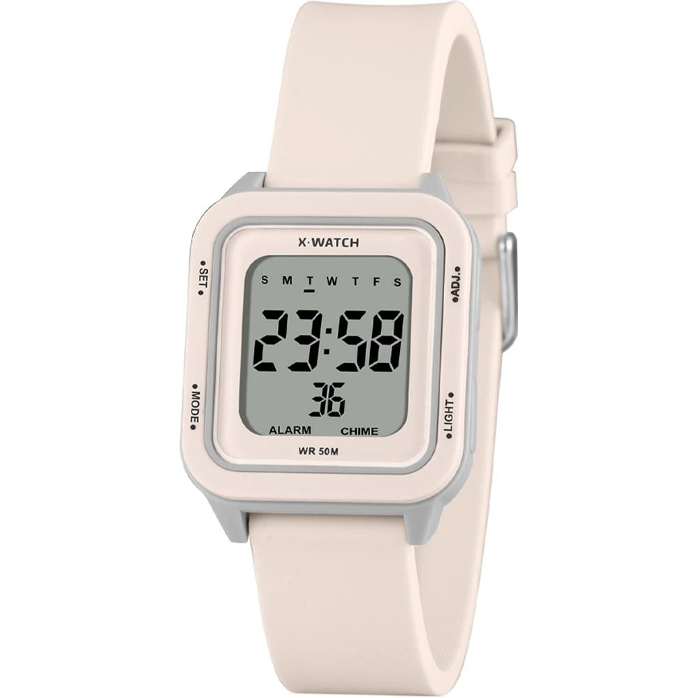 Funções: Digital, Iluminação, Calendário, Cronógrafo, AlarmeResistência à Água: 50mDiâmetro da Caixa: 36 mm x 40 mmCaracterísticas: com caixa em Resina Cinza com detalhes Nude e pulseira em Silicone NudeVidro: AcrílicoFundo ParafusadoAlimentação do maquinário: BateriaMostrador Nude com detalhes em pretoGarantia de 1 Ano