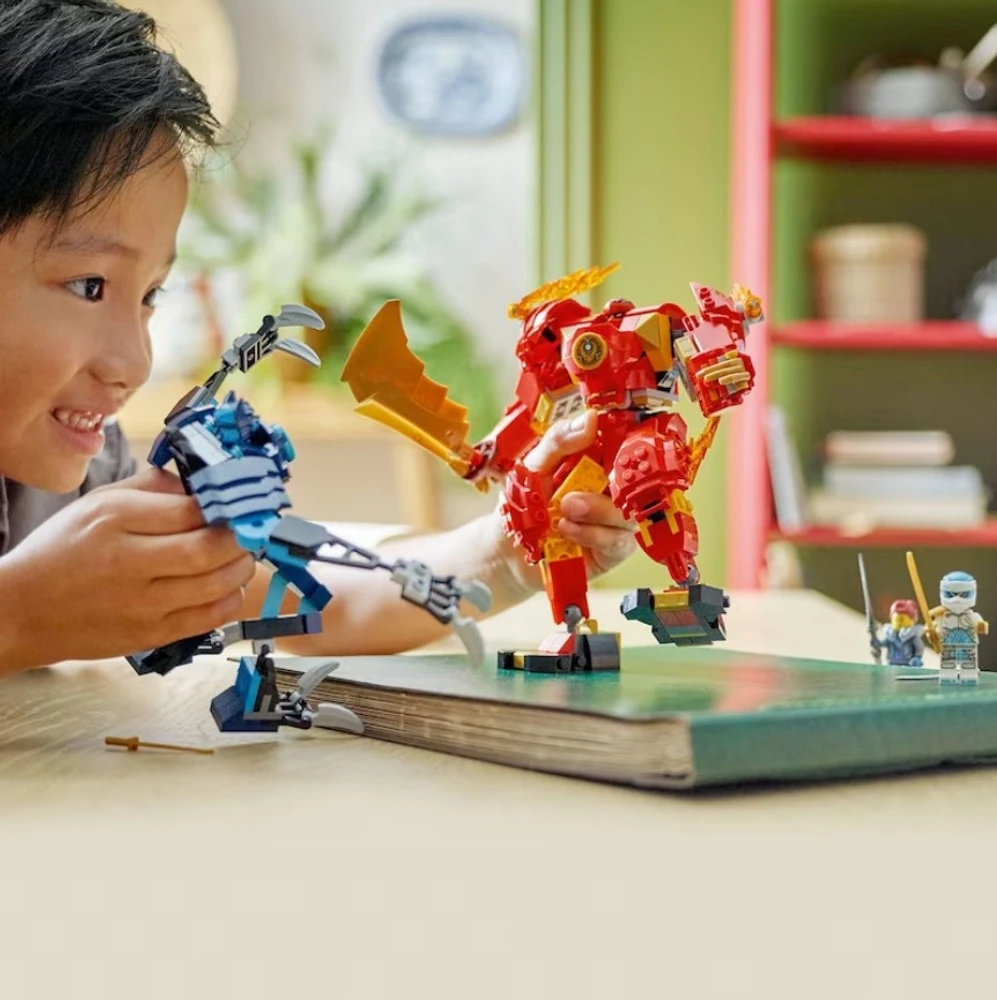 • Figura de robô personalizável combinada com 2 outros robôs, que são vendidos separadamente • Os fãs de Ninja podem misturar e combinar peças para construir seu próprio modelo de traje mecânico • 4 minifiguras: Kai, Zane, Jordana e Wolf Mask Warrior • Três dos personagens NINJAGO® venha armado com acessórios para espadas • Ideia de presente ninja para crianças a partir de 7 anos para desfrutar de brincadeiras independentes • Confira outros conjuntos de brinquedos de ação (vendidos separadamente) na linha LEGO® NINJAGO® • Os conjuntos LEGO® NINJAGO® permitem que as crianças escapem para um mundo de ação de fantasia • Conjunto ninja de 322 peças com brinquedo mecânico com mais de 16 cm de altura