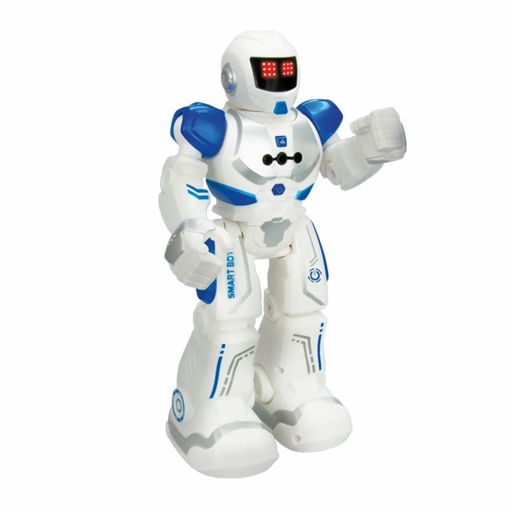 Programe mais de 80 ações ao mesmo tempo neste incrível robô que pode ser controlado por controle remoto ou por sensor de movimentos. Assim que você liga seu Smart Bot ele já demonstra um pouco de seu carisma com uma pequena dança de apresentação. Faça seu robô caminhar como um ser humano ou deslizar para se movimentar mais rapidamente em todas as direções pelo controle remoto ou simplesmente com o aceno de suas mãos. Ao dançar o Smart Bot emite expressões faciais projetadas em seu visor no capacete. O pequeno robô já vem com cabo USB para carrega-lo, são 2 horas carregando, para 3 horas de diversão.