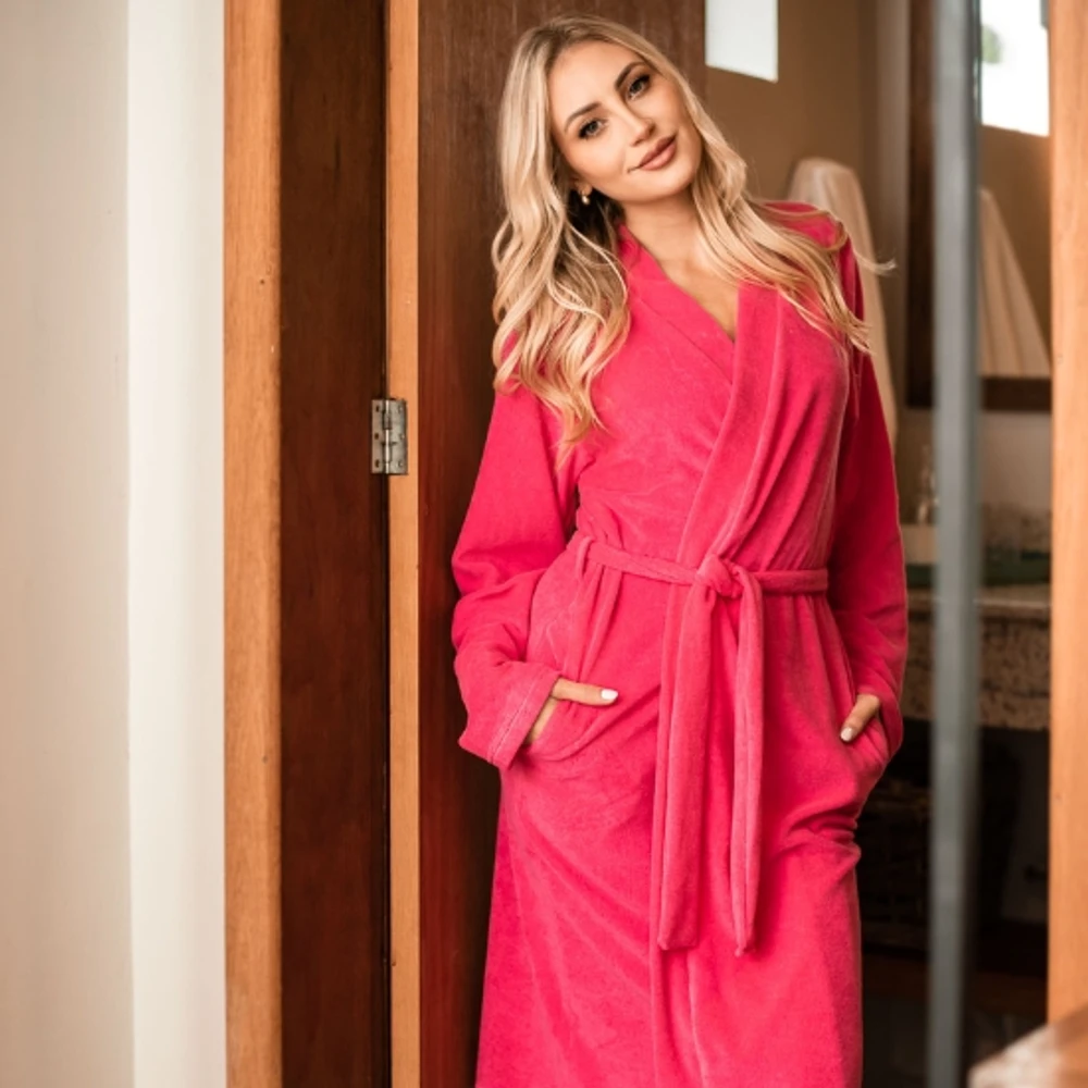 Durabilidade Garantida: Construído para resistir ao teste do tempo, este roupão não só oferece conforto supremo, mas também é feito para durar, garantindo que você possa desfrutar do seu investimento por muitos anos.