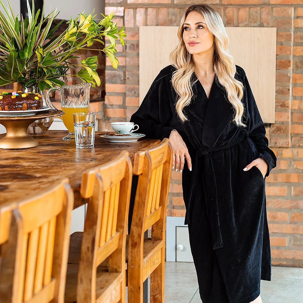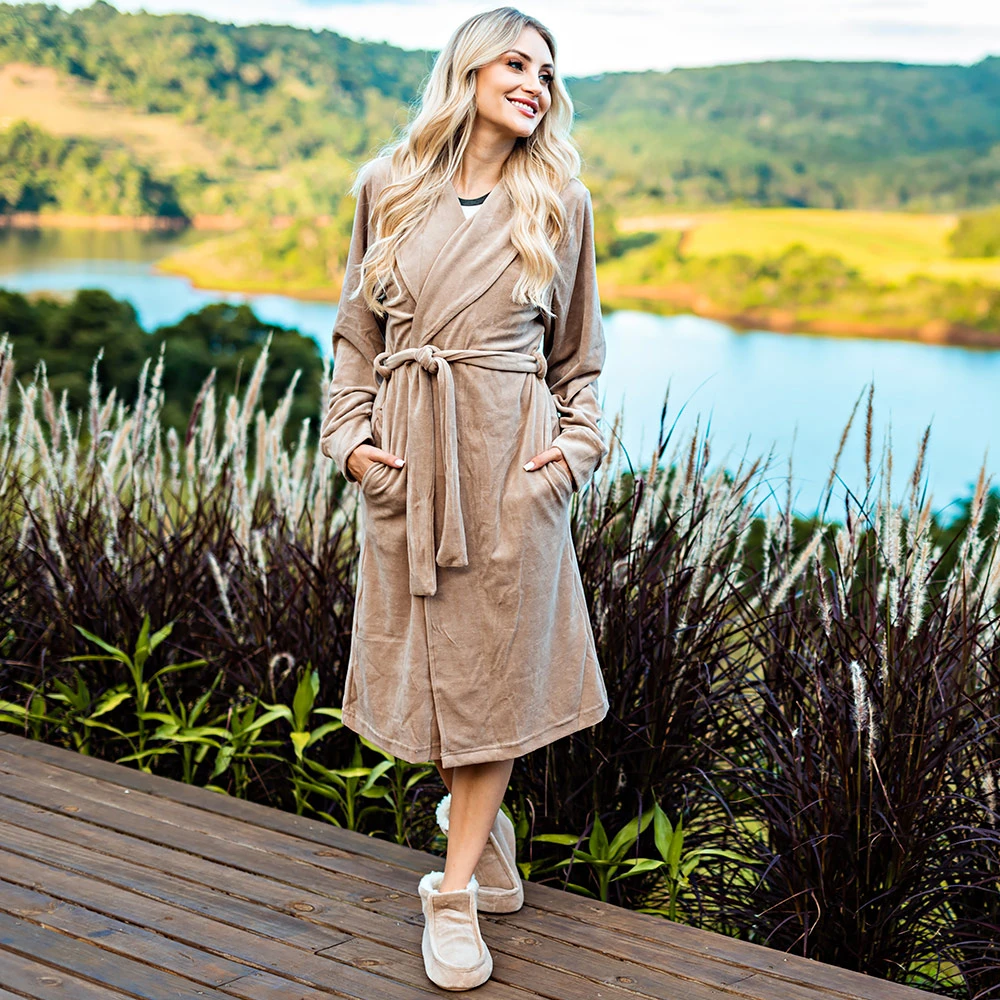 O Roupão Susi foi especialmente desenvolvido para sua hora de descanso, feito em Plush, esse roupão vai deixar seus dias ainda mais agradáveis com um toque único e sofisticado. Com transpasse frontal e bolsos, esse modelo vai te encantar. Ideal para quem gosta de sentir-se confortável sem perder o estilo!