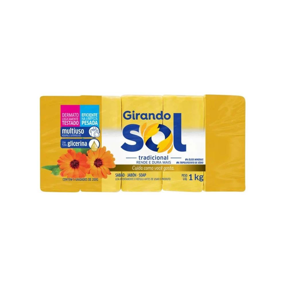 O Sabão em Barra Glicerina Multiuso 5X200G Girando Sol é a solução ideal para quem busca eficiência e cuidado em cada limpeza. Com fórmula enriquecida com pura glicerina, oferece alto poder de limpeza para roupas e utensílios, agindo eficazmente até nas sujeiras mais pesadas. Dermatologicamente testado, garante proteção à pele, evitando ressecamento. Seu rendimento prolongado faz cada barra durar mais, tornando-o um produto econômico e indispensável em qualquer lar.