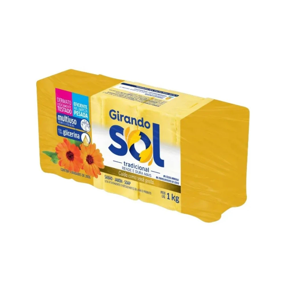 Garanta já sua limpeza impecável com o Sabão em Barra Girando Sol, o aliado perfeito para o cuidado completo da sua casa.