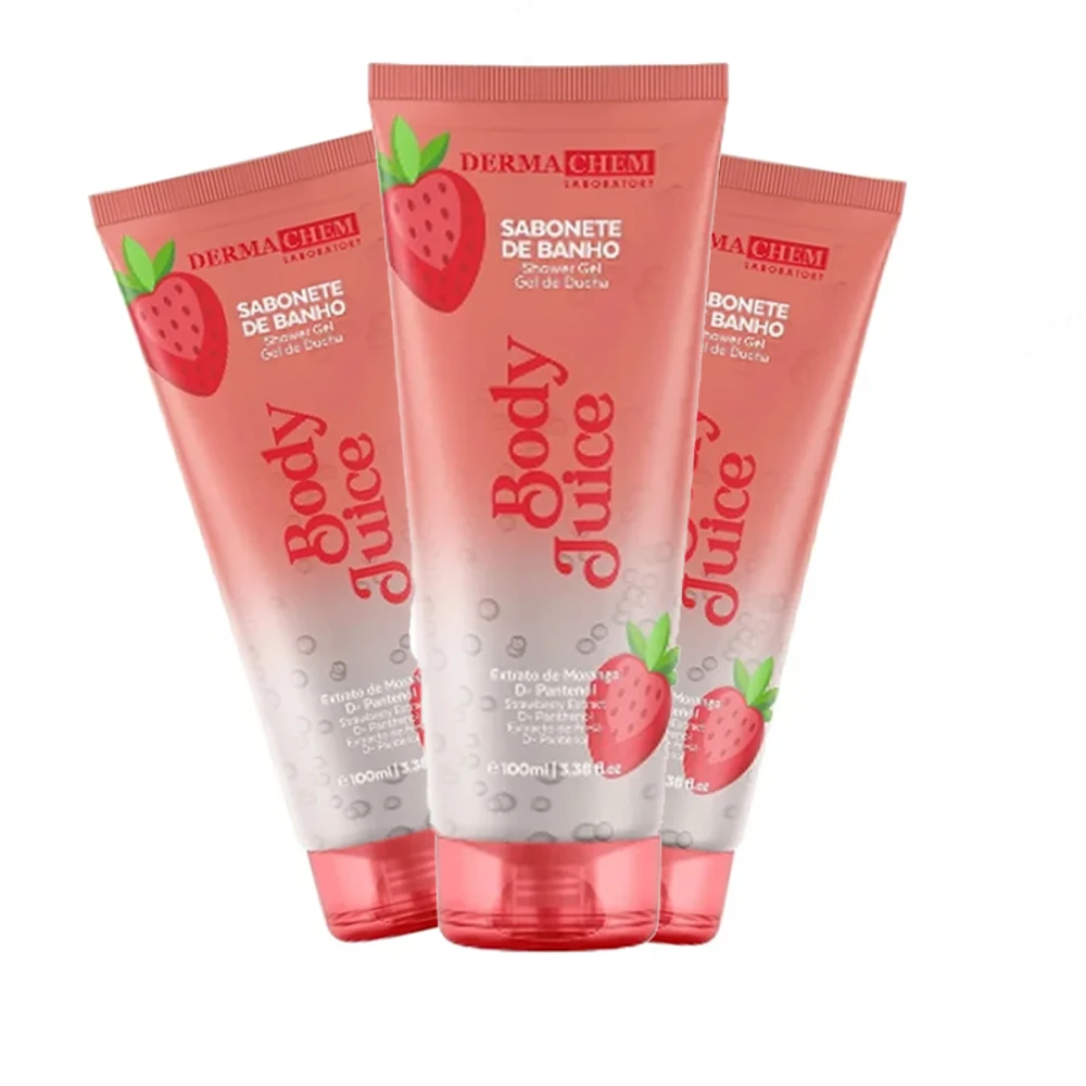 Sabonete de Banho Body Juice Morango 100ml da Dermachem. Principais benefícios: - Limpeza suave que respeita o equilíbrio natural da pele - Hidratação prolongada com D-Pantenol, prevenindo o ressecamento - Fragrância natural de morango que deixa a pele perfumada e refrescante - Textura em gel fácil de aplicar e enxaguar - Embalagem prática de 100ml, ideal para uso em casa ou viagens As imagens são meramente ilustrativas. As cores dos produtos podem variar devido às características do monitor e do ambiente durante a visualização. instruções sobre cores ou modelos sortidos: Atenção: cores ou modelos sortidos. Caso tenha uma preferência, especifique no campo "Observações do Cliente" durante o checkout ou entre em contato após a compra. Se nenhuma preferência for indicada, o produto será enviado de forma aleatória conforme disponibilidade em estoque. Essas instruções permitem que os clientes expressem suas preferências em relação às cores ou modelos dos produtos, garantindo uma melhor experiência de compra.
