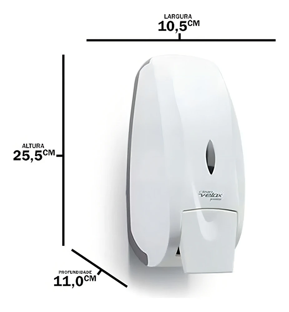 SABONETEIRA VELOX BRANCO, desenvolvido com foco na sustentabilidade, sendo 50% do dispenser composto por material reciclável.? Constituído de material de alta resistência ao impacto, termoplástico, que facilita a reciclagem e é amigável ao meio ambiente.? Disponível em versões para sabonete líquido, álcool gel e sabonete espuma.? Sistema de fechamento inteligente.? Compatível com refil premisse de 600ml, 700ml e 800ml.? Tecla de pressão com limite de curso, garantindo eficiência na dispensação do sabonete com controle de quantidade.? Visor central transparente para verificar o nível do sabonete, facilitando o reabastecimento.NÃO ACOMPANHA O RESERVATÓRIO