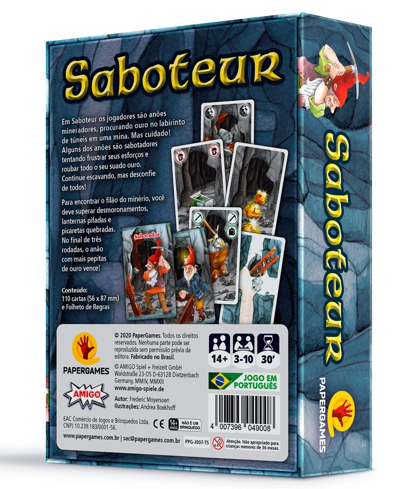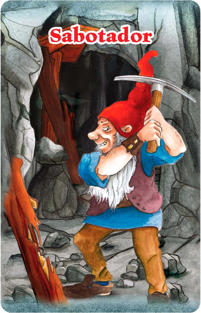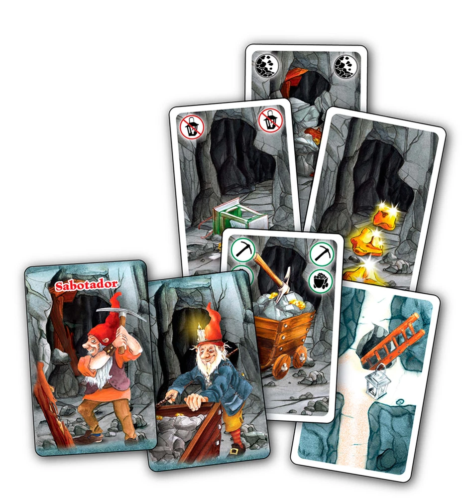 Em Saboteur os jogadores são anões mineradores, procurando ouro no labirinto de túneis em uma mina.