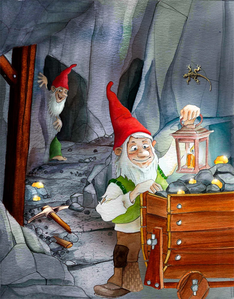 Para encontrar o filão do minério, você deve superar desmoronamentos, lanternas pifadas e picaretas quebradas. No final de três rodadas, o anão com mais pepitas de ouro vence!