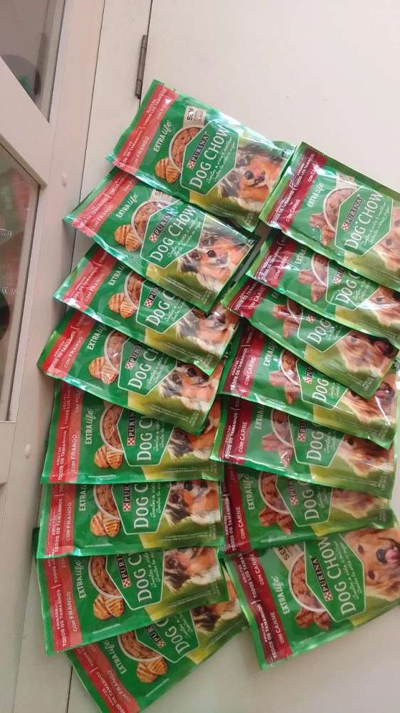 Sachê Dog chow,alimento úmido para cães , ideal para completar a alimentação do seu cão,com pedaços de carne suculenta,sem corantes .