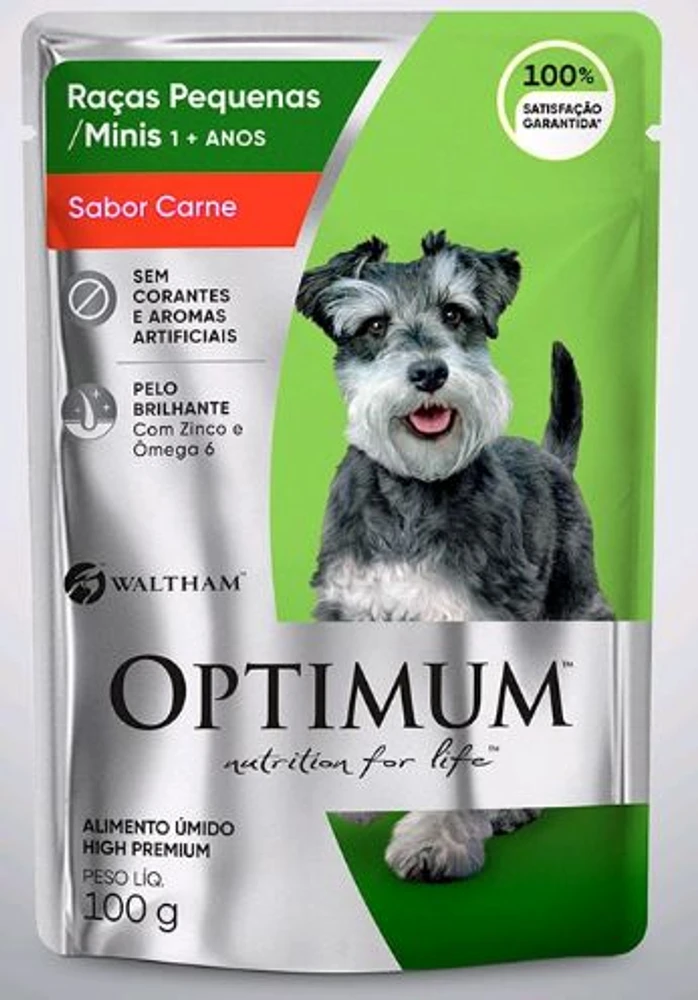 Sachê optimum para raças pequenas e minis ,alimento úmido ,sem corantes e aromas artificiais.