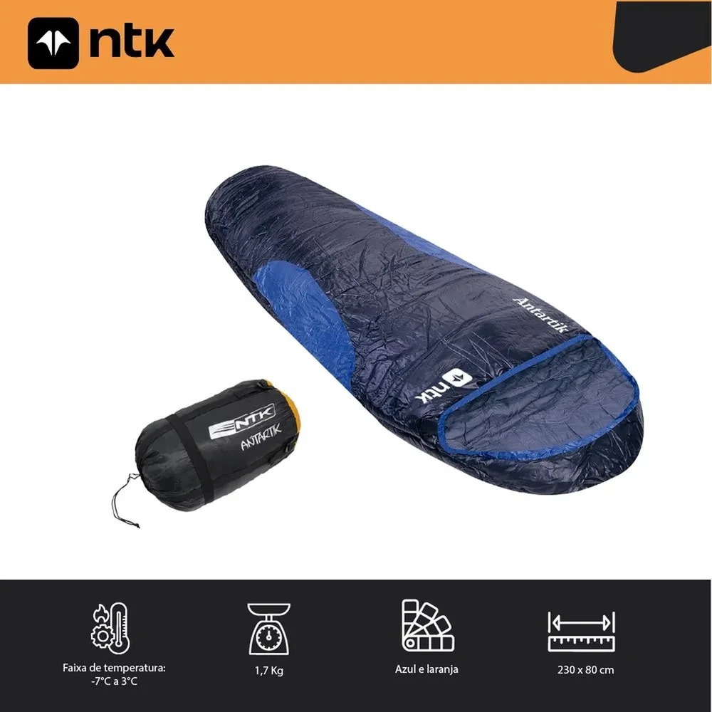 Saco de Dormir Nautika Antartik -7°C a 3°C Sarcófago 2,30 m Conforto Extremo para Camping Antartik Preto e Azul