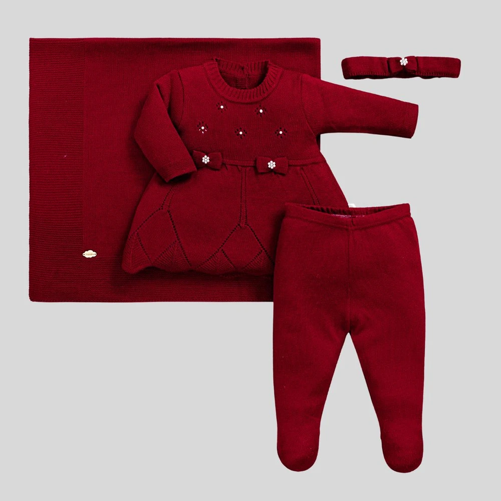 Saída de Maternidade em Tricô Vermelha: conforto e elegância para os primeiros dias da sua bebê.