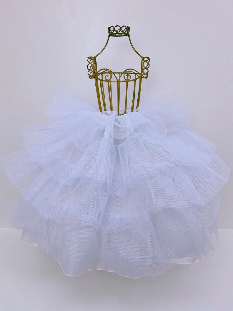 Saiote de armação fabricado para proporcionar volume ou armação aos vestidos infantis de festa.