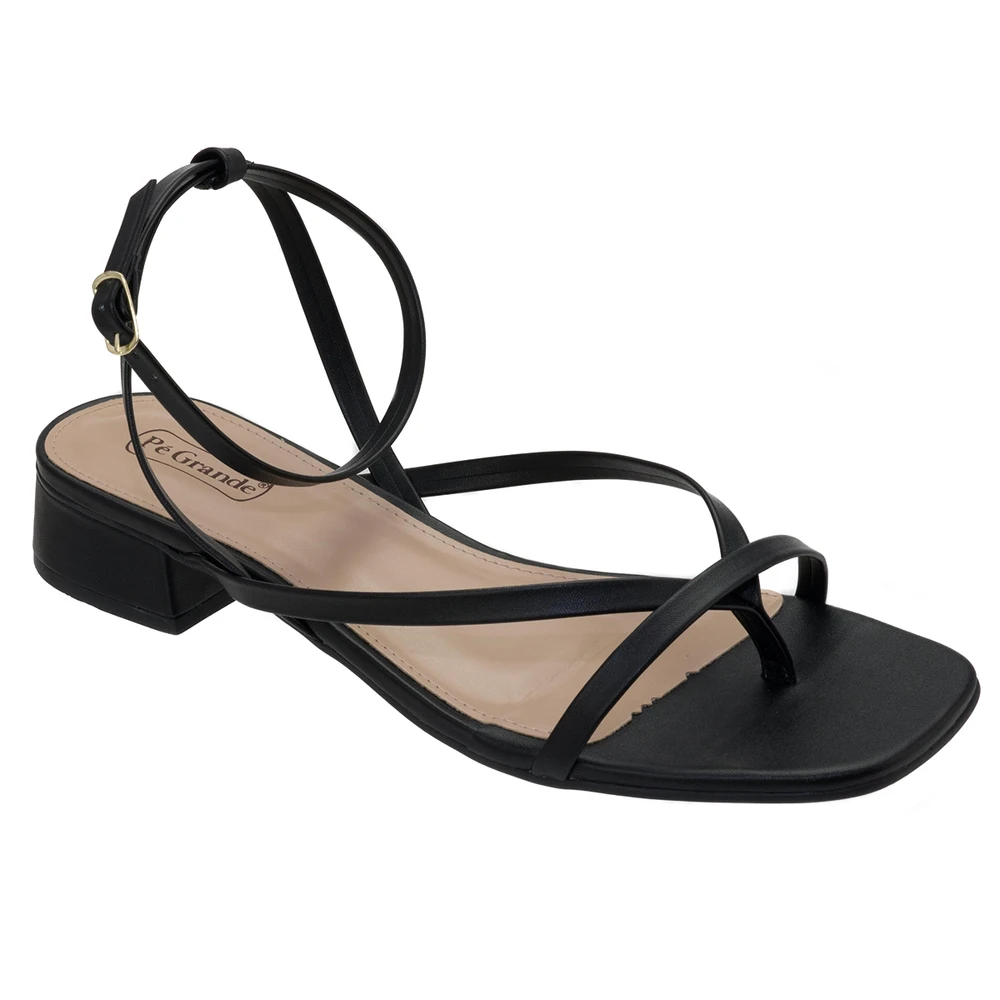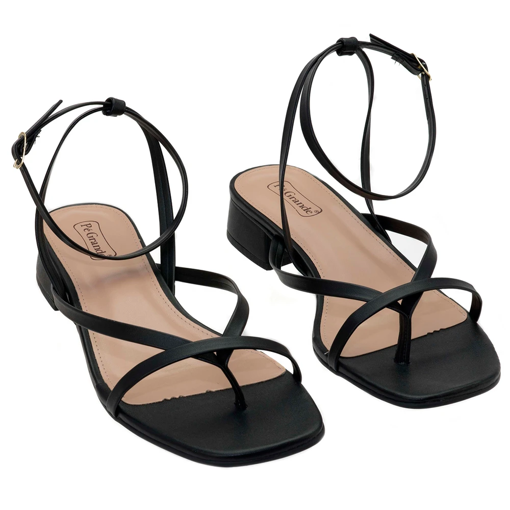 Sandália em laminado sintético com solado em borracha antiderrapante e saltinho de 9 cm de altura.