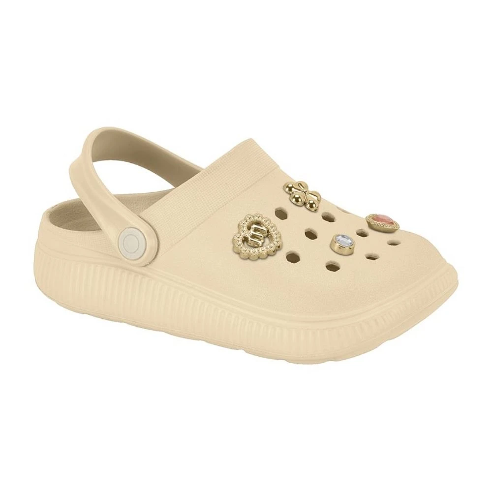 Feita em material leve e resistente (EVA), essa sandália oferece ventilação ideal graças aos furinhos no cabedal, garantindo frescor durante o dia todo.