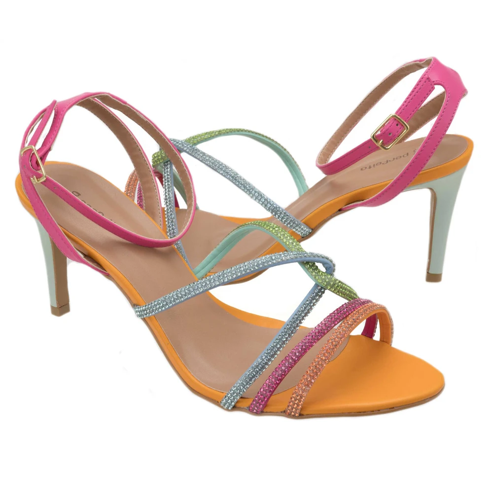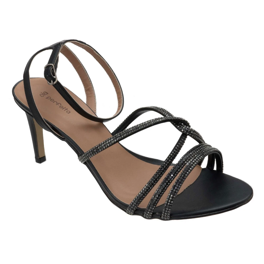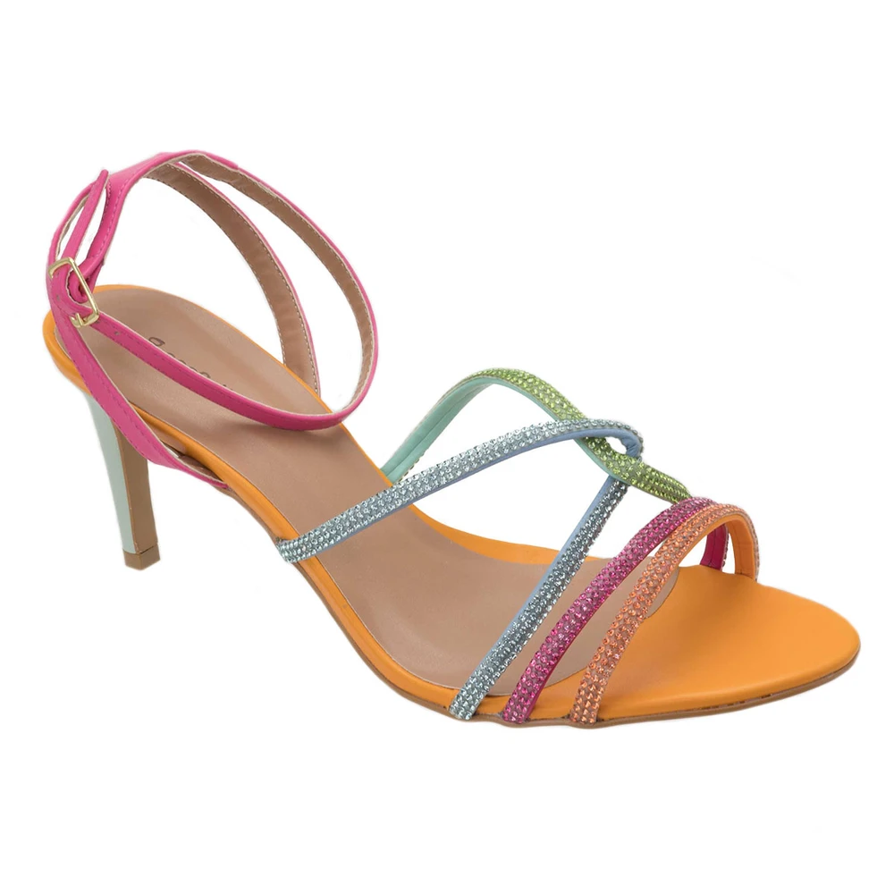 Sandália em laminado sintético com solado em borracha antiderrapante e saltinho de 9,5 cm de altura.