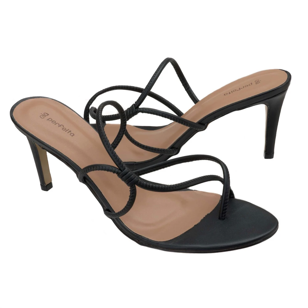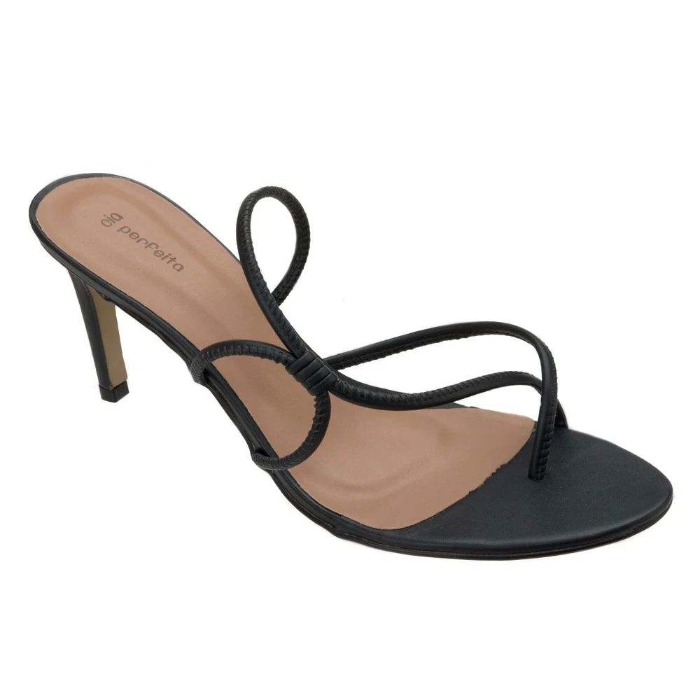 Sandália em laminado sintético com solado em borracha antiderrapante e saltinho de 9,5 cm de altura. Com detalhes em strass, muito delicada e elegante.