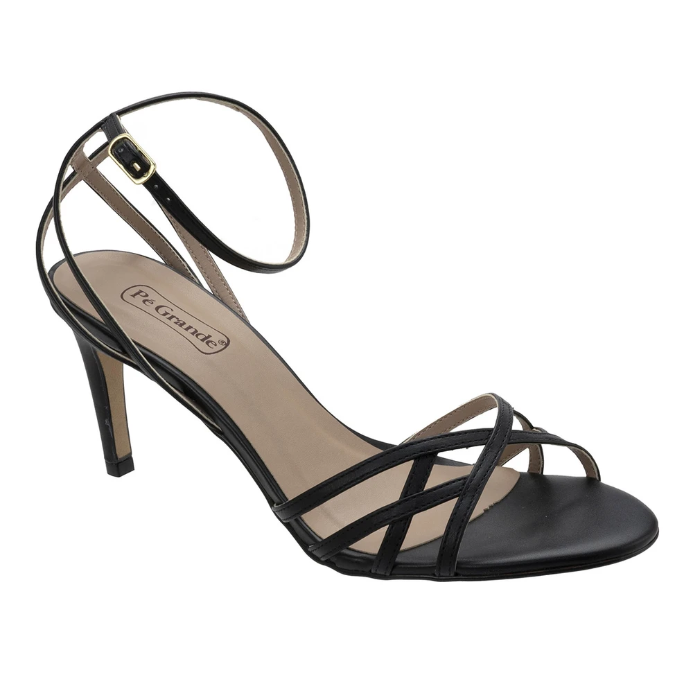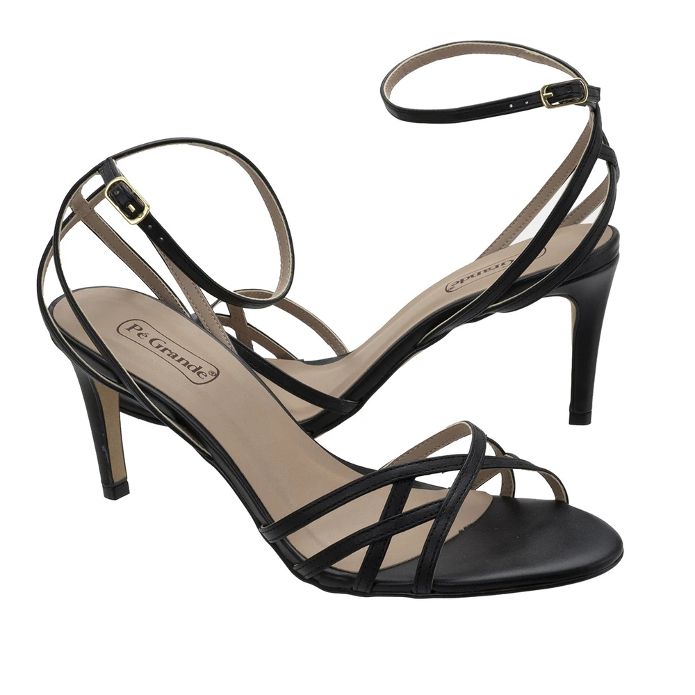 Sandália em laminado sintético com solado em borracha antiderrapante e saltinho de 9,5 cm de altura. Muito delicada e elegante.