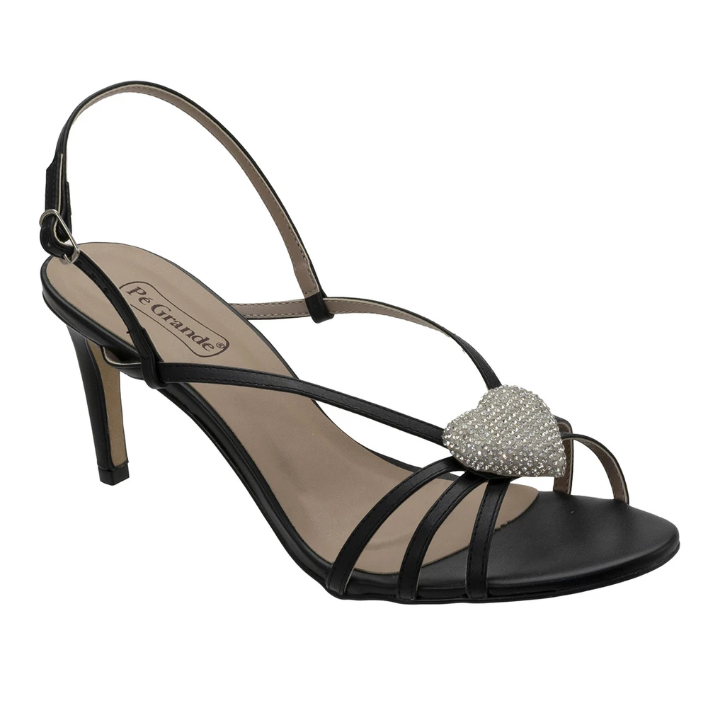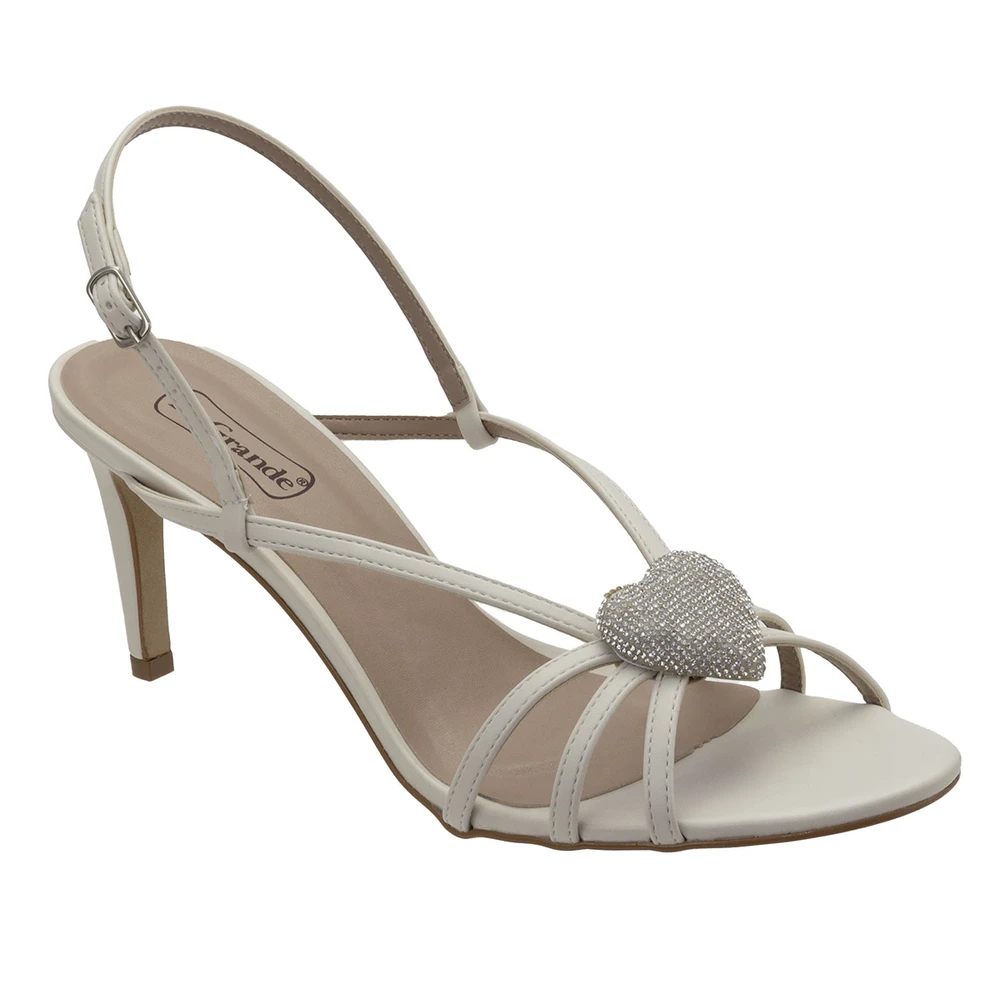 Sandália em laminado sintético com solado em borracha antiderrapante e saltinho de 9,5 cm de altura. Muito delicada e elegante.