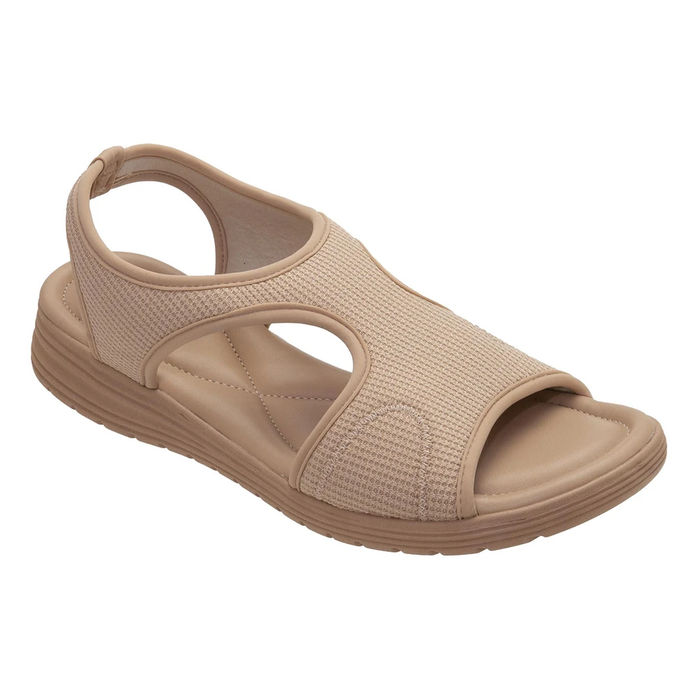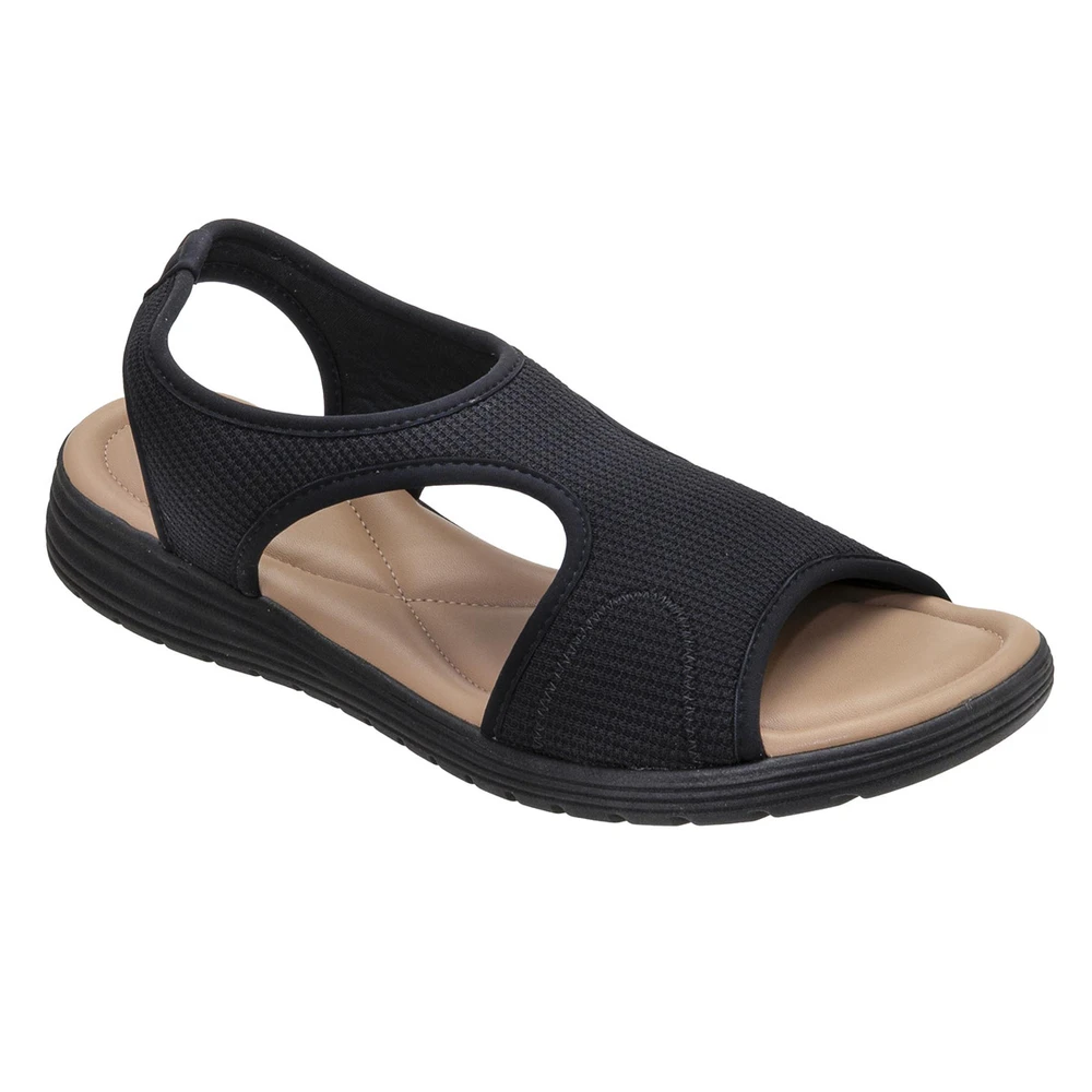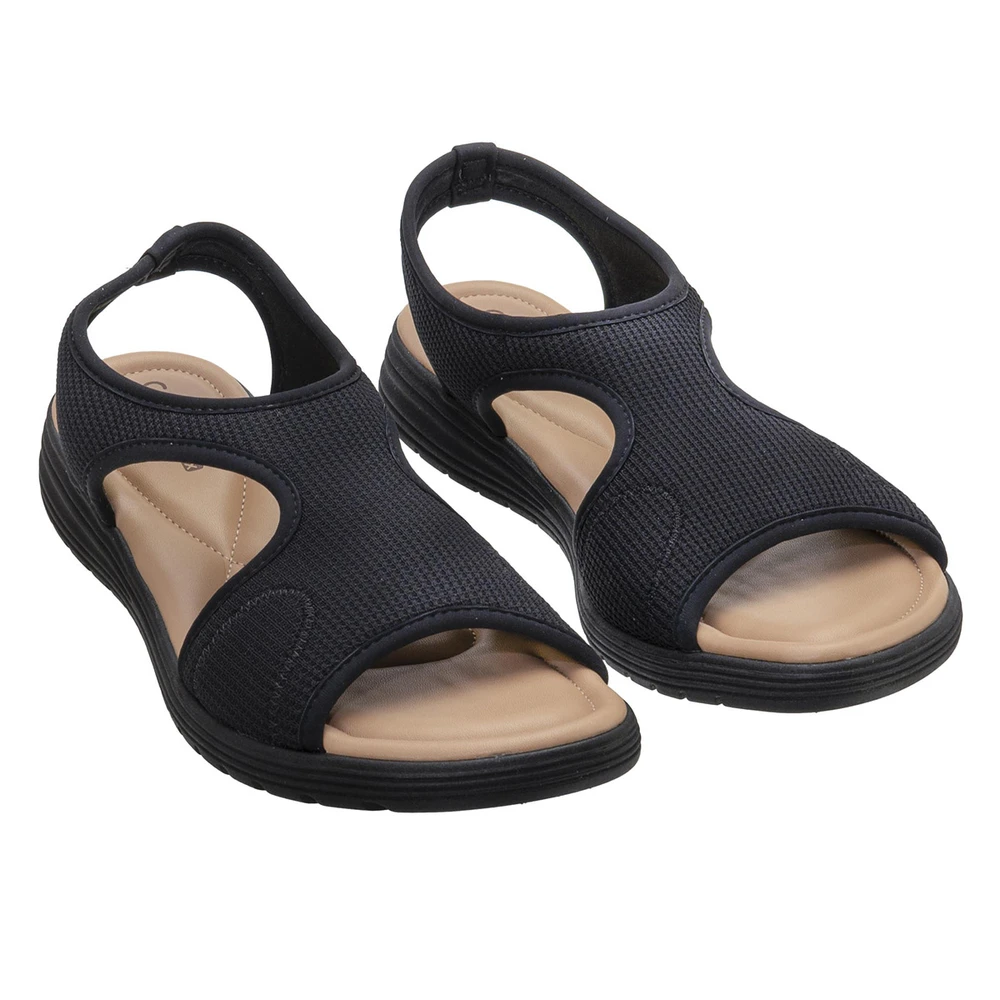 Seu design anatômico conta com recortes estratégicos nas laterais, que garantem maior ventilação e conforto térmico, ideal para os dias mais quentes. Confeccionada em tecido elástico com textura respirável, a sandália abraça os pés suavemente, sem apertar, permitindo fácil calce e melhor ajuste.