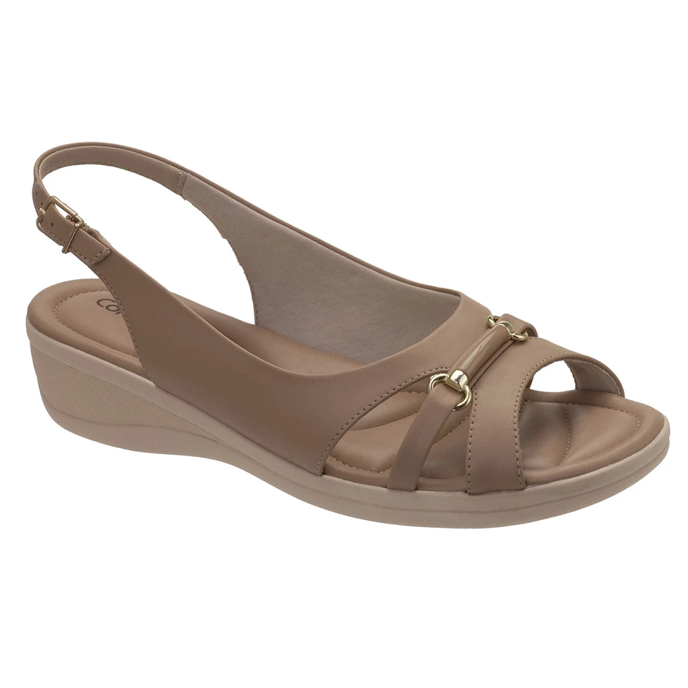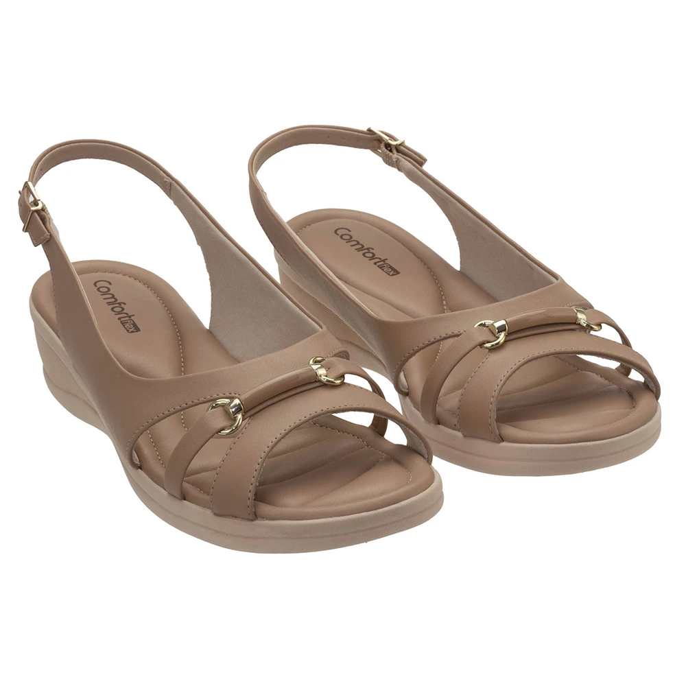 Sandália em laminado sintético, com solado em borracha e saltinho anabela de 5 cm de altura.