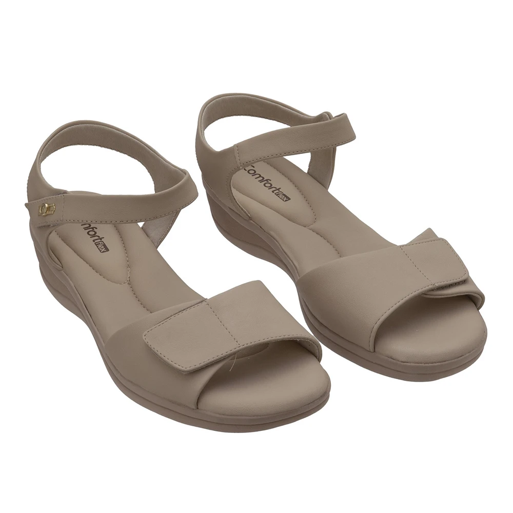 A sandália feminina ortopédica Comfortflex combina estilo e cuidado com seus pés. Desenvolvida com design anatômico, proporciona conforto prolongado, leveza e segurança ao caminhar. Ideal para quem busca bem-estar diário aliado à elegância em qualquer ocasião.