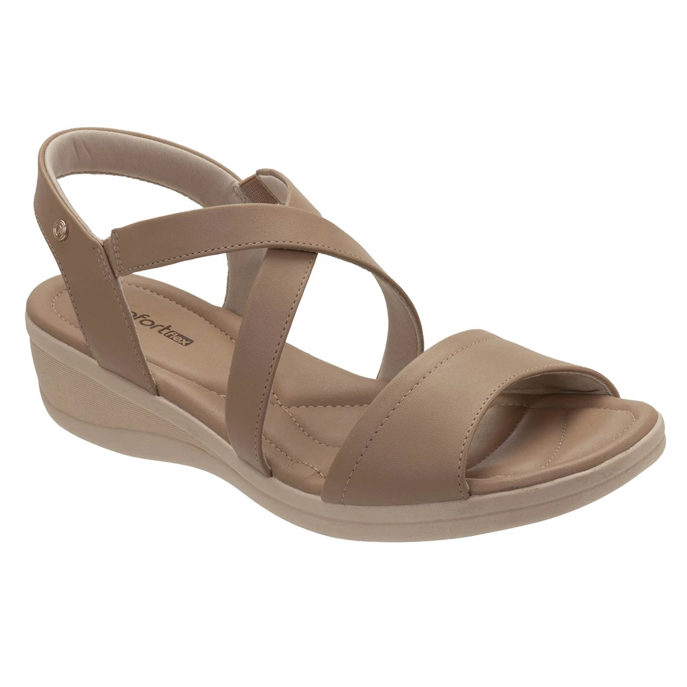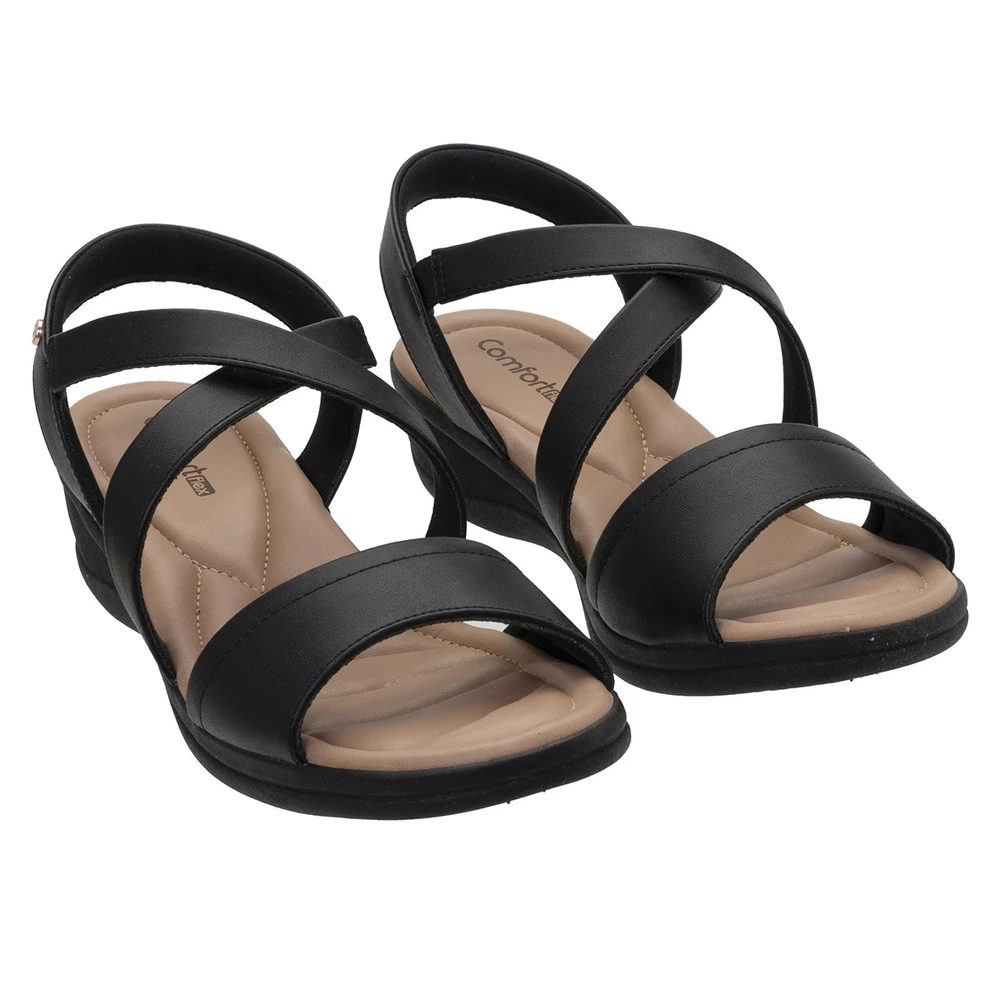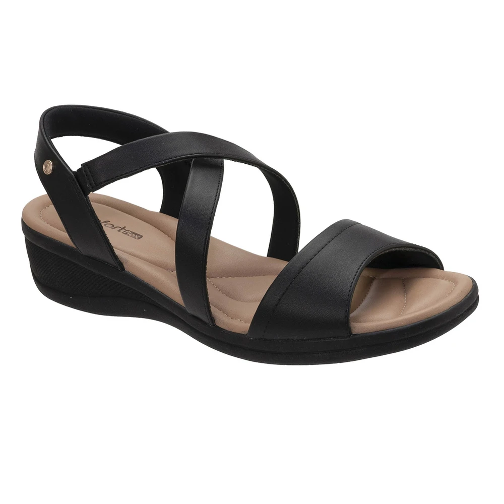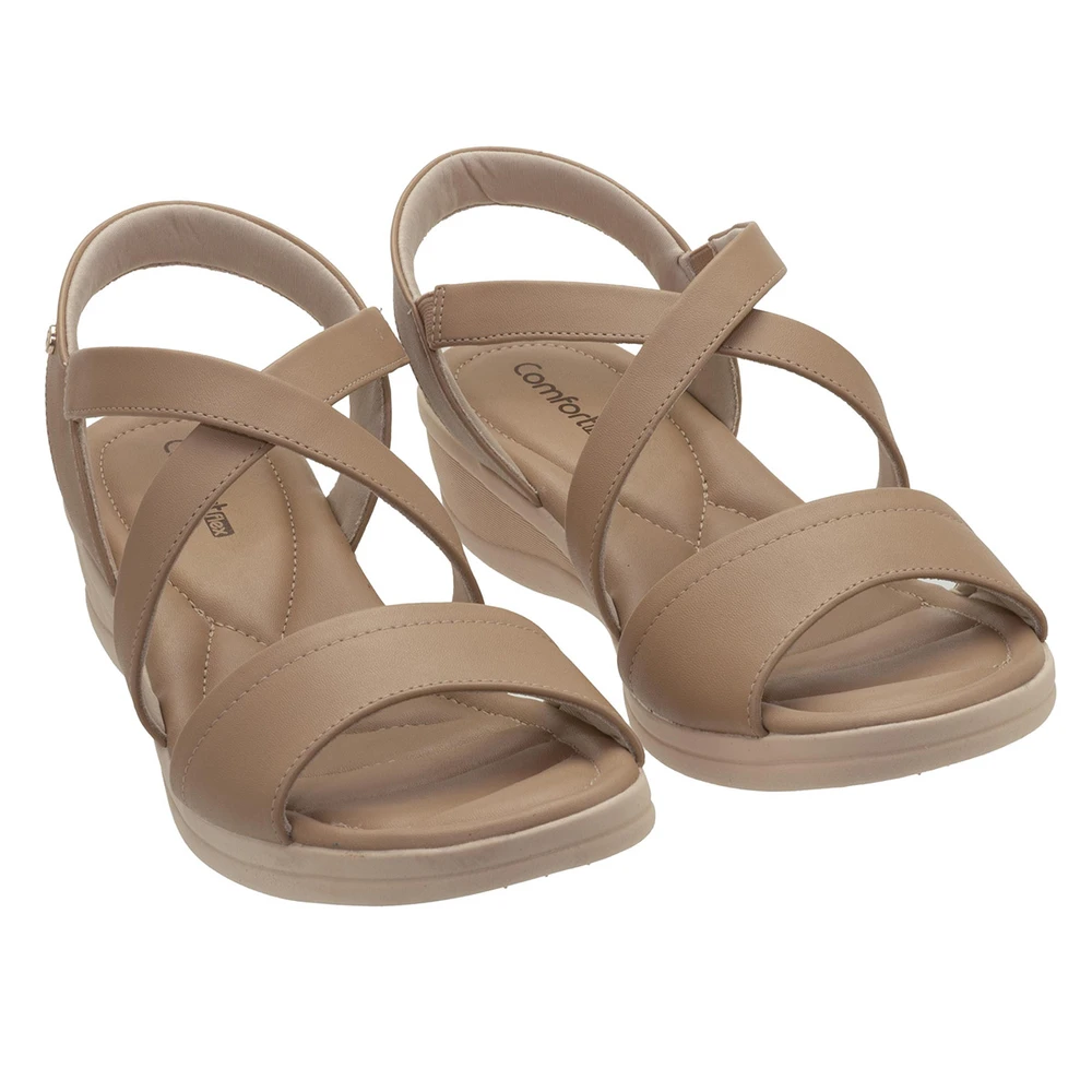 Sandália em laminado sintético, com solado em borracha e saltinho anabela de 5 cm de altura.