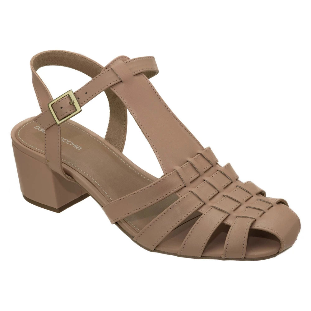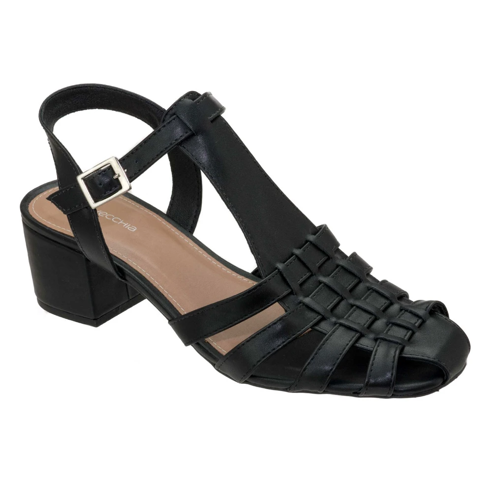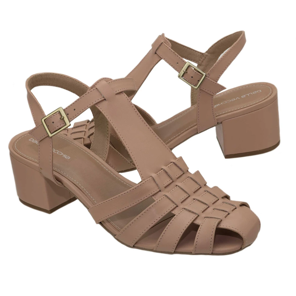 Sandália em laminado sintético, com saltinho de 6,5 cm de altura com solado em borracha antiderrapante.