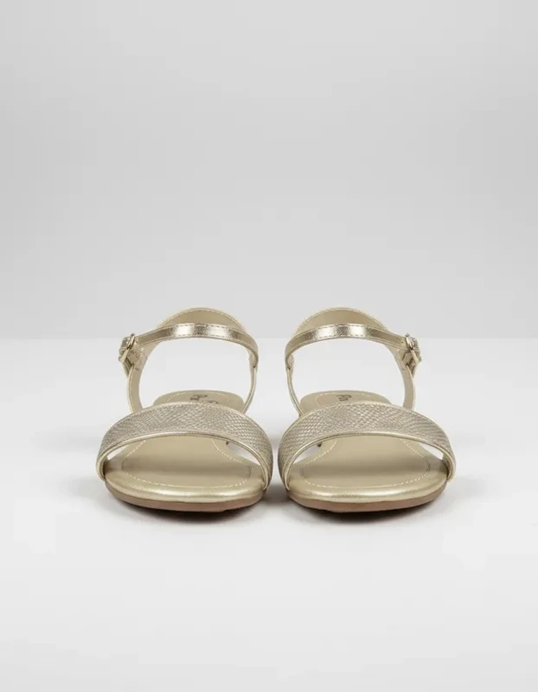 Charmosa e versátil, esta sandália rasteira dourada é perfeita para momentos leves e especiais do dia a dia. Com design atemporal , trás detalhe com textura simulando couro em material metalizado. O fecho em fivela easy - sem pino - facilita o calce e garante firmeza ao caminhar.