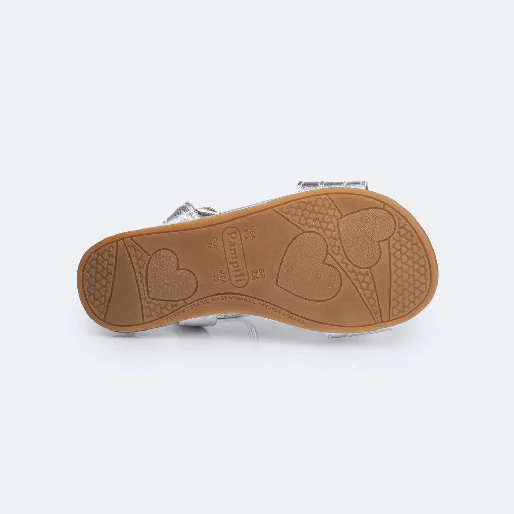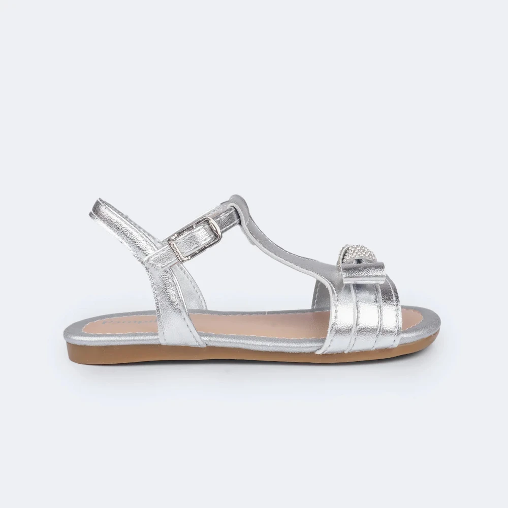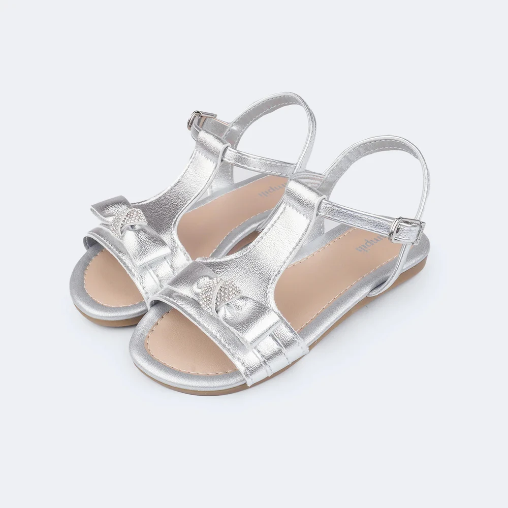 Pensada para acompanhar os primeiros passos com charme e cuidado, a sandália Mili prateada une beleza, leveza e muita praticidade para o dia a dia da menina. Com visual clássico estilo rasteirinha, esse modelo conquista pelo brilho.