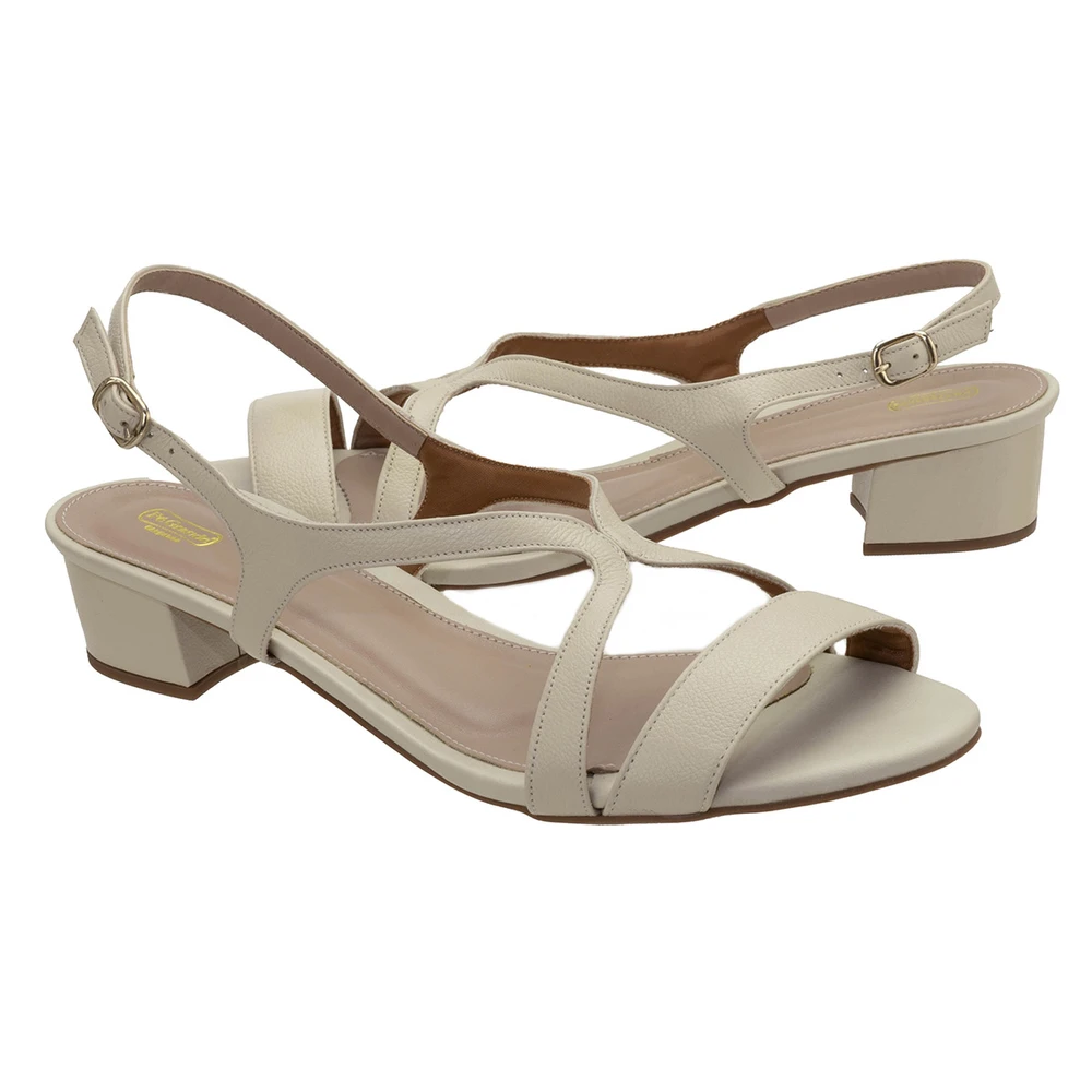 Sandália em couro com saltinho de 7 cm de altura e solado em borracha antiderrapante.