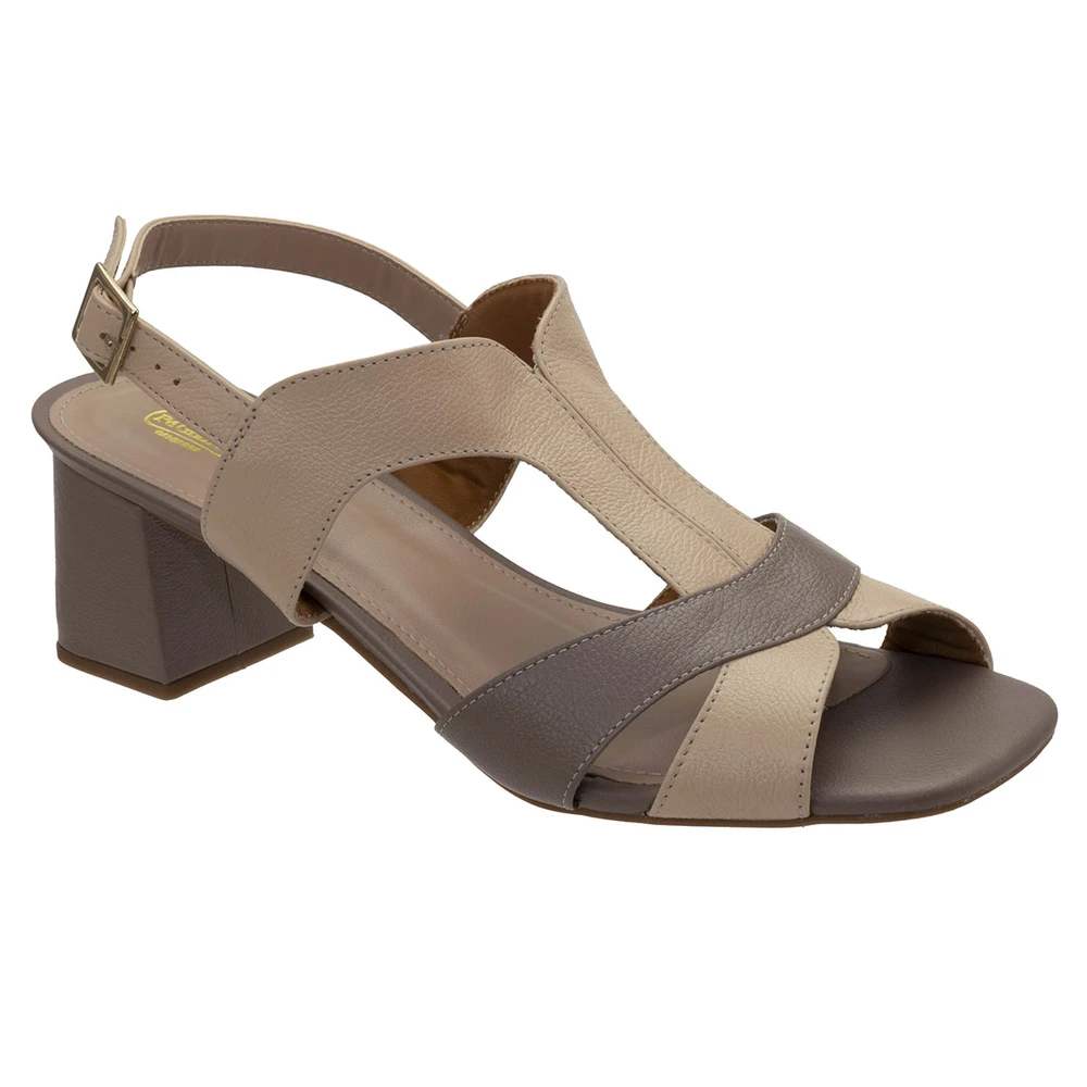 Sandália em couro com saltinho de 7 cm de altura e solado em borracha antiderrapante.