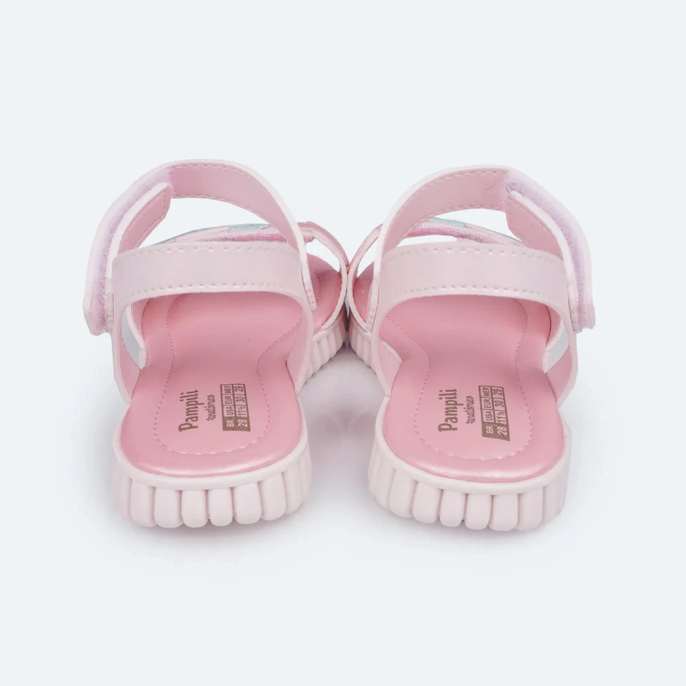 Papete infantil com calce fácil em velcro, facilitando o calce para as meninas. Solado feito em material emborrachado que possui aderência com o chão, proporcionando flexibilidade, menor desgaste e maior resistência térmica.
