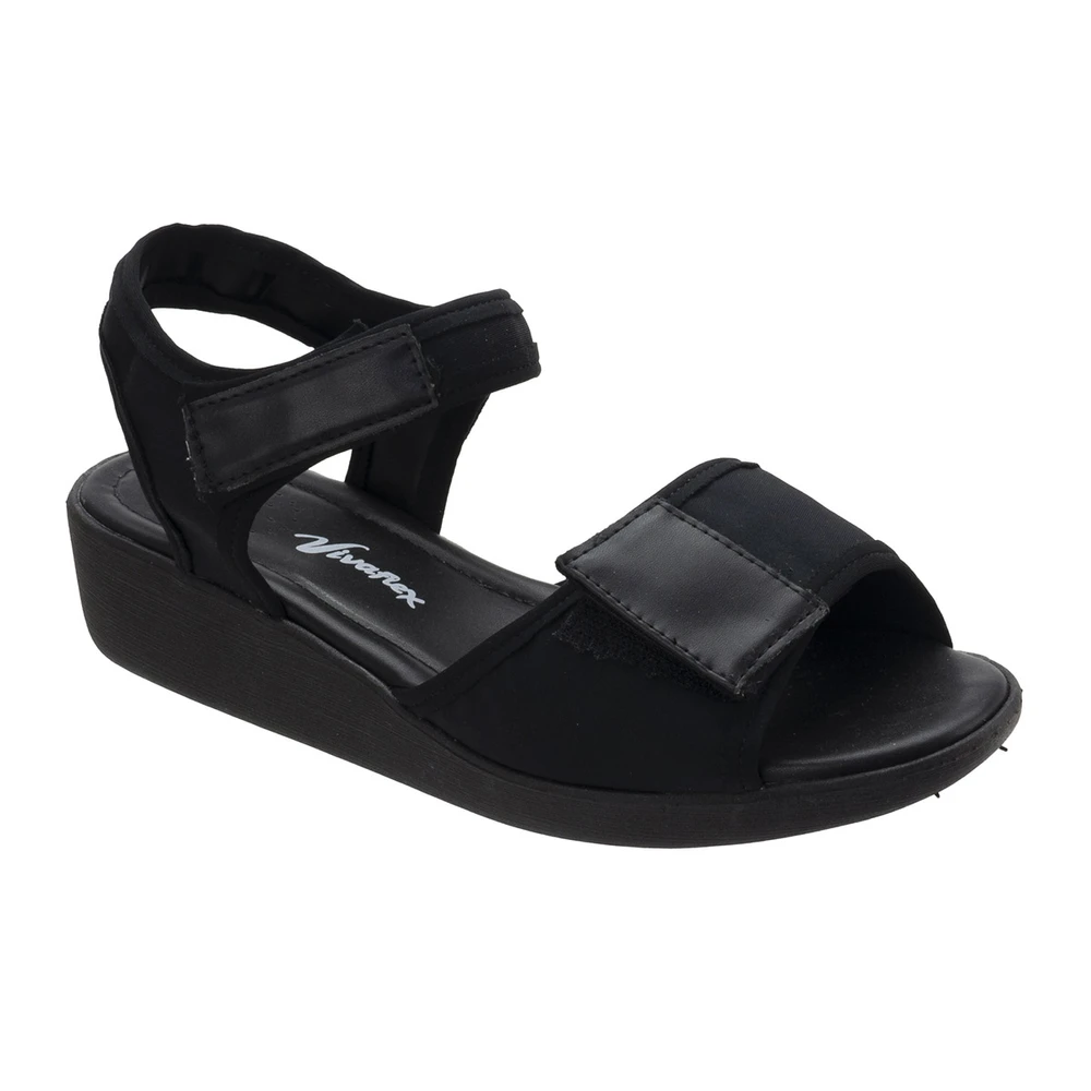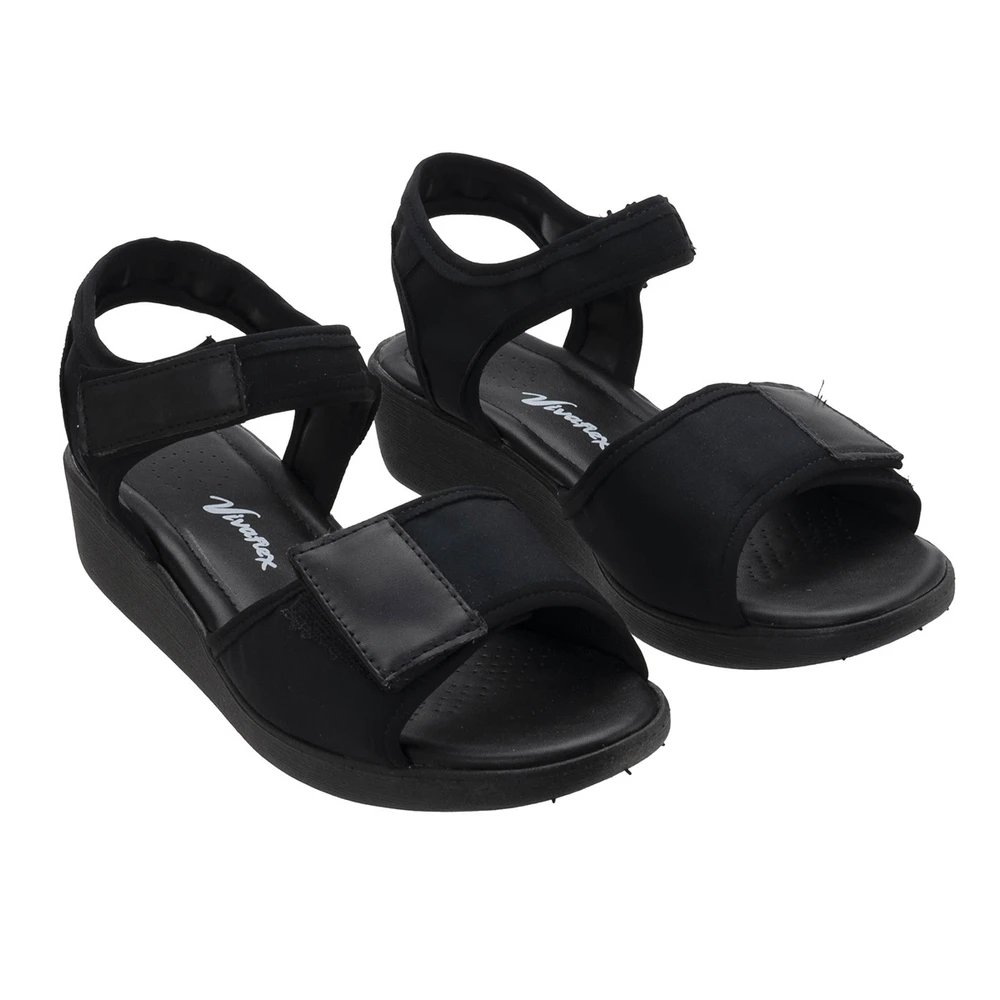 Sandália em laminado sintético com salto plataforma de 4,5 cm de altura e solado em borracha antiderrapante. Extremanete confortável e leve.